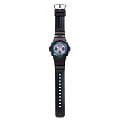 Наручные часы устойчивы к ударам и механическим повреждениям благодаря противоударному корпусуУдаропрочный корпусМеханизм заключён в корпус, выполненный из современных материалов, устойчивых к ударам, механическим повреждениям и падению с высоты: инновационный пластик, карбон, нержавеющая сталь, титан. из полимерного пластика, такой же материал был выбран для гибкого ремешка. Внимание сразу перетягивают на себя циферблат, отличающийся необычной мембранной текстурой, и синий безельБезельВнешний ободок, закрепляющий стекло. В спортивных часах так называется поворотное кольцо с делениями на циферблате, выполняет роль таймера – замеряет отрезки времени на шкале. Неподвижный безель – элемент декора. Однонаправленно вращающийся безель на дайверских часах позволяет фиксировать моменты погружения и выныривания на поверхность.. Модель получает заряд энергии от солнечной батареи, реализуется технология . Индикатор уровня заряда аккумулятора. 12/24-часовой формат отображения времени. Автоматическая светодиодная подсветкаСветодиодная подсветкаСветодиодная или LED-подсветка обеспечивает появление яркого холодного свечения за счёт LED-элементов - маленьких лампочек. Они потребляют минимальное количество энергии, чаще всего можно встретить 1 светодиод, в нижней части циферблата.. Водонепроницаемость 200 метров - часы пригодны для плавания. Минеральное стекло. Коррекция времени радиосигналом. Будильник, автоматический календарь до 2099 года, таймер обратного отсчёта, секундомер. Габариты: 52 x 46,4 x 14,9 мм.