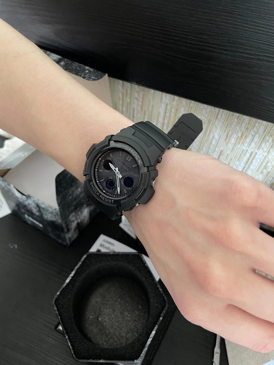 Были до этого GA-100 и сразу после них эта модель кажется маловатой, но по истечении 1 недели ты понимаешь, что наконец-то нашёл свои часы!!! Лёгкие, удобные и при этом со всеми плюсами G-Shock! Читал отзывы о плохой видимости с 3-х экранов, но здесь можно заморочиться и заказать модель на eBay в чёрном цвете и с 3-мя светлыми экранами, правда стрелки будут не полностью белыми, AWG-M100SBB-1AJF, в Москве таких расцветок нет!!!