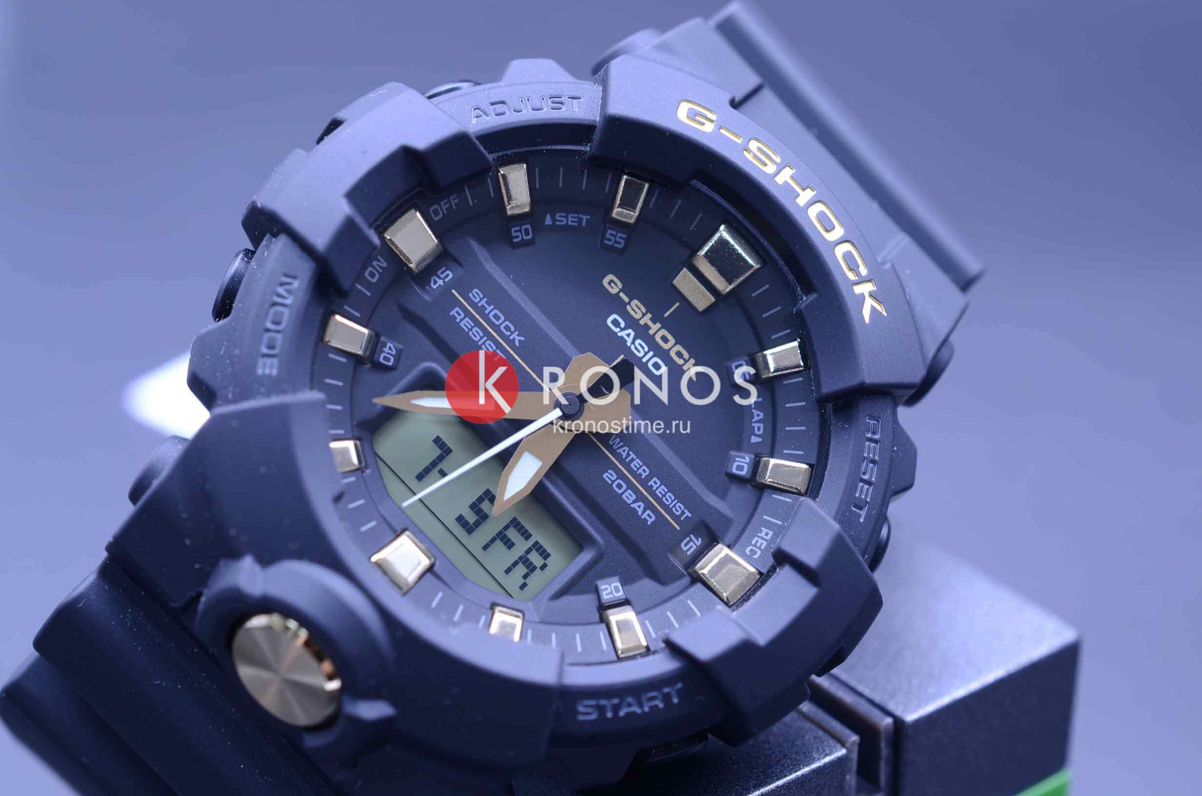 Стильная фешн-модель из серии G-SHOCK GA-800 в черном корпусе с деталями циферблата и корпуса цвета золота. Внешне часы данной серии схожи с джишоками GA-700, однако 800-серия получила уменьшенный размер корпуса и теперь вам не нужно обладать запястьем геракла, чтобы комфортно носить любимые шоки!