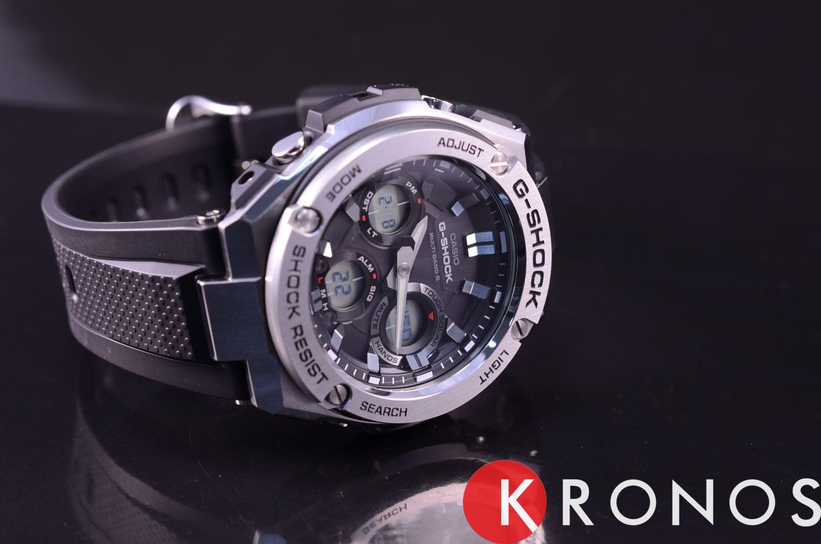 Лаконичный дизайн напоминает о классическом облике механических часов, серебристый блеск нержавеющей стали 316L никогда не потеряет актуальности. Противоударный корпусУдаропрочный корпусМеханизм заключён в корпус, выполненный из современных материалов, устойчивых к ударам, механическим повреждениям и падению с высоты: инновационный пластик, карбон, нержавеющая сталь, титан. с лёгкостью выдерживает любые нагрузки и падения с высоты, дополнительную устойчивость к повреждениям придаёт полимерная составляющая. Модель серии G-Steel - это часы на солнечной батарее , есть индикатор заряда аккумулятора. Минеральное стекло. Циферблат со светодиодной подсветкойСветодиодная подсветкаСветодиодная или LED-подсветка обеспечивает появление яркого холодного свечения за счёт LED-элементов - маленьких лампочек. Они потребляют минимальное количество энергии, чаще всего можно встретить 1 светодиод, в нижней части циферблата.. Приём радиосигнала. Таймер, секундомер, мировое времяМировое время Полезное часовое усложнение, отображающее время в основных городах и известных областях по всему миру, оно связано с часовыми поясами, удобно для путешественников и бизнесменов. , будильник, UTCUTCВсемирное кординационное время, не имеющее привязки к географическому положению Гринвича, основывается на атомном отсчёте времени. Регулировка времени осуществляется более точно, чем устаревшее GMT.