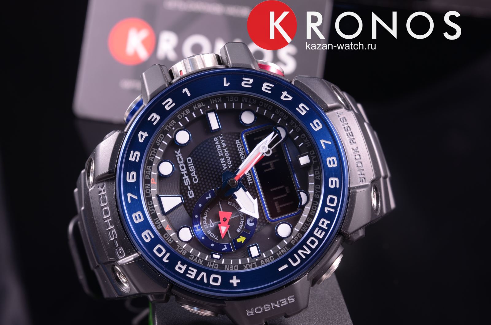 Новые часы CASIO Gulfmaster GWN-1000 - прочность G-Shock фунциональные возможности ProTrek. Работают от солнечной батареи.Фаза луны, график отливов и приливов. Радио синхронизация времени. Электрическая светодиодная подсветка с функцией автоматической подсветки при наклоне часов. Барометр (260 / 1.100 hPa). Термометр (-10°C / +60°C). Встроенный датчик давления определяет изменения в атмосферном давлении и преобразовывает полученные результаты в абсолютную высоту до 10 000 м. Встроенный цифровой компас определяет северный магнитный полюс.  Функция секундомера. Таймер обратного отсчета. 5 ежедневных будильников. Автоматический календарь. Функция мирового времени. Отображение времени в 12-часовом или 24-часовом формате. Особая ударопрочная конструкция защищает от ударов и вибрации. Минеральное стекло устойчивое к возникновению царапин. Ремешок из полимерного материала. Водонепроницаемость (20 Бар).