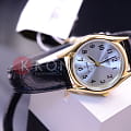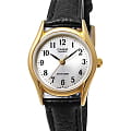 Яркий, переливающийся на свету золотой корпус данной модели сделан из латуни. Его гладкие края красиво обрамляют круглый циферблат золотистого цвета. Для удобства прочтения арабские цифры выдержаны в черном цвете, и поэтому моментальное определение времени не составит труда. Удобный, черный ремень сделан из кожи и привлекательно контрастирует вместе с корпусом. Классическая, и одновременно прочная модель наручных часов от Casio послужит своей обладательнице долгие годы.