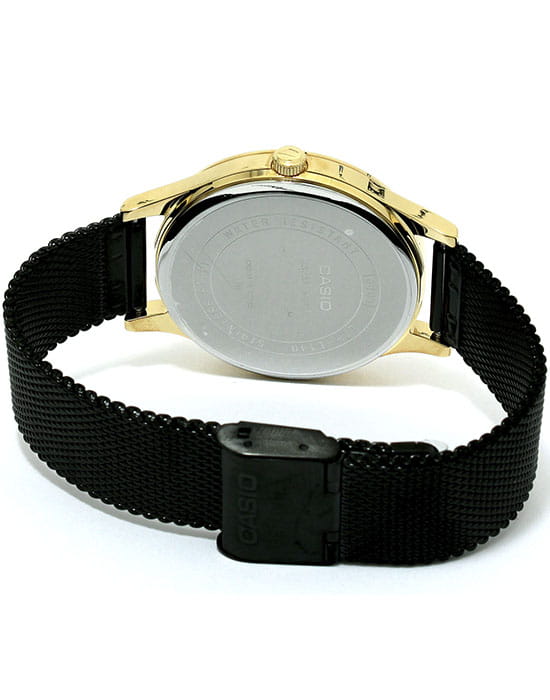 Стильный, благородно смотрящийся дизайн сочетает в себе золотой и черный цвета. На браслет миланского плетения и корпус, сделанные из стали, нанесено защитное IP-покрытиеIP-покрытиеМетод ионного напыления. Демонстрирует повышенную устойчивость к истиранию, окислению и химическим веществам. Под воздействием высокого давления и температуры около 1500°C молекулы металла надёжно соединяются с частицами корпуса часов.. На круглом, черном циферблате расположены аккуратные временные отметки в виде штрихов. Защита часов от негативных воздействий обеспечивается минеральным стеклом. Благодаря кварцевому типу механизма отсутствует необходимость каждый раз заводить часы. Вес аксессуара составляет 60 грамм.