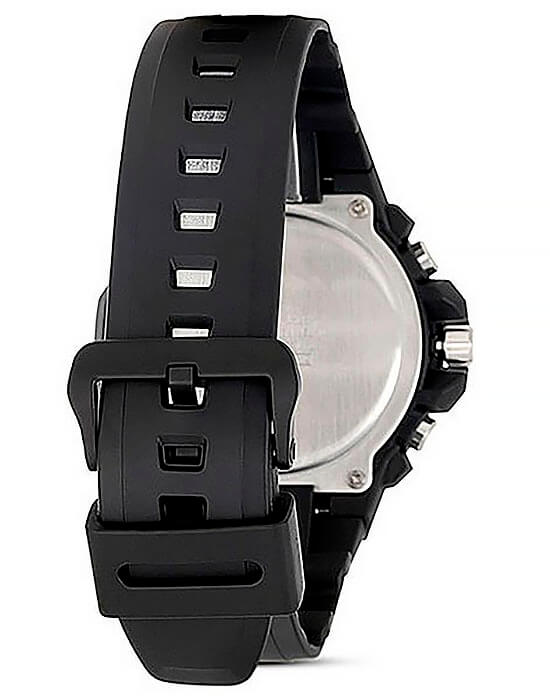 В часах имеется хронограф. Корпус и браслет черного цвета выполнены из высококачественных полимерных материалов. На дисплее отображается текущая дата. Изделие надежно защищено выпуклым акриловым стеклом. Высокая точность информации - прошедшее время отображается с точностью до доли секунды. Информация на дисплее четко видна даже в темное время суток благодаря неоновому покрытию. Высокая водонепроницаемость, которая составляет 10 Бар.