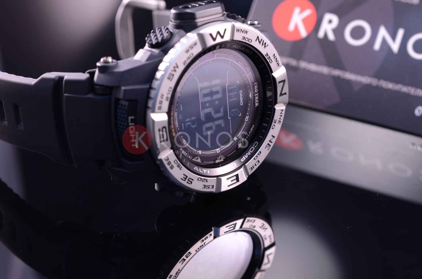 Многофункциональные японские мужские наручные часы. Круглый корпус часов выполнен из темного пластика, безель из стали, резиновый браслет. Инверсионный, жидкокристаллический дисплей. Часы оснащены такими дополнительными функциями как секундомер, таймер обратного отсчета, высотометр, термометр, компас, альтиметр. Минеральное стекло, устойчивое к появлению царапин. Магнитоустойчивая, ударопрочная модель. Источником энергии служат солнечные батареи. Синхронизация времени по радиосигналу.