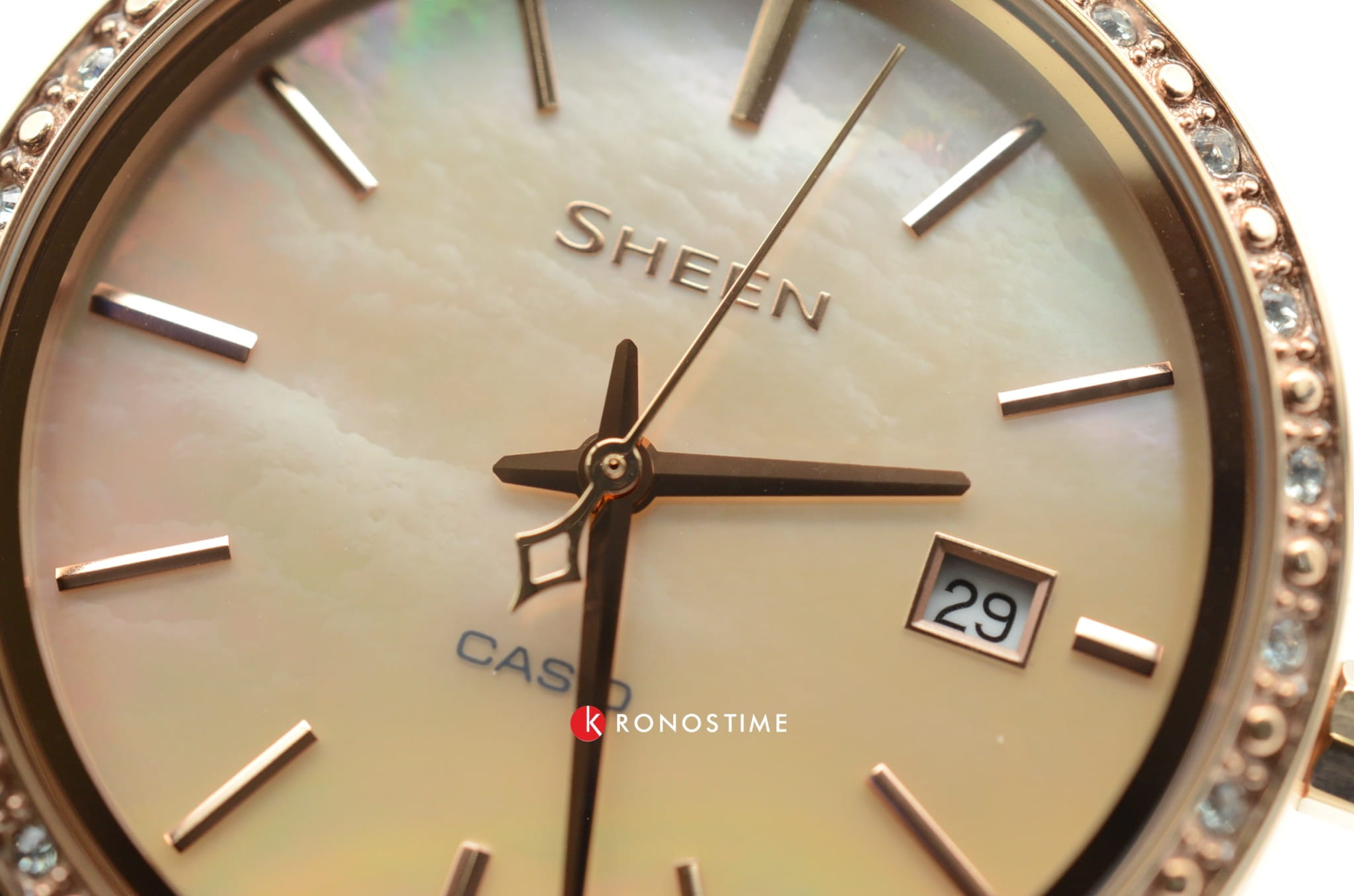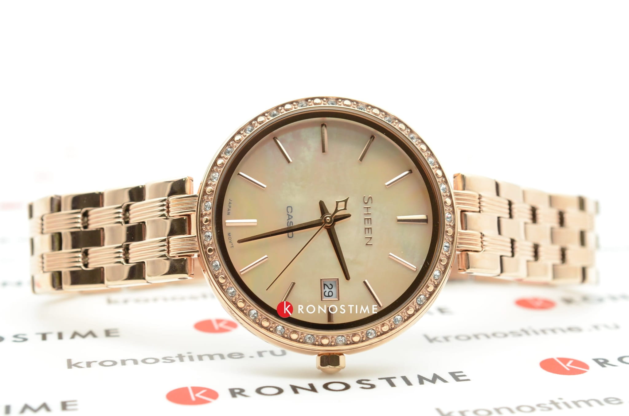 Привлекательный экстерьер - это далеко не единственное преимущество Casio Sheen Часы могут отображать время, они способны погружаться в воду на глубину до 50 метров, а стильный циферблат, украшенный камнями от Swarovski, надежно укреплен минеральным стеклом, защищающим часы от практических любых механических повреждений