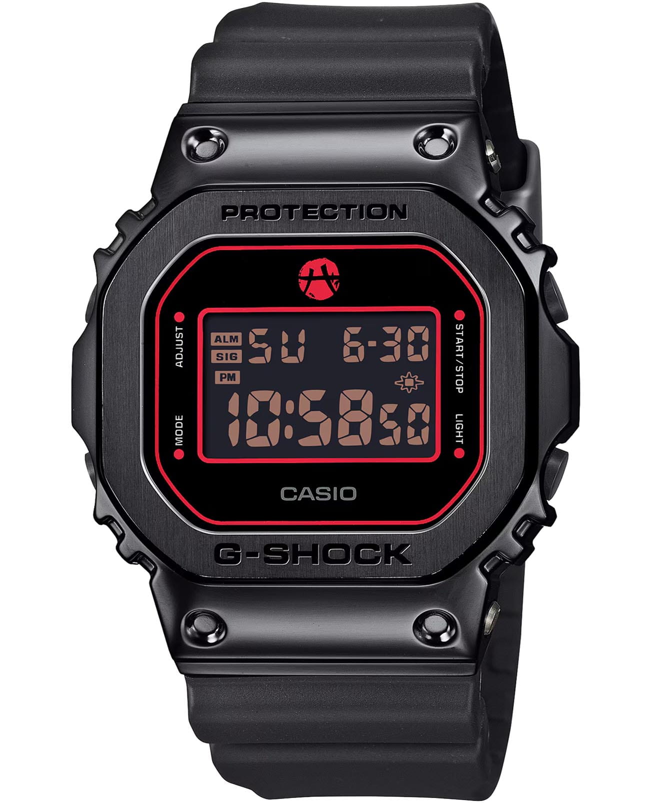 Модель Casio G-Shock GM-5600RH-1 - это результат сотрудничества компании G-SHOCK, которая продолжает свои бесконечные поиски максимальной прочности. Благодаря ярко контрастирующему черному ремешку, элегантному и изысканному дизайну эти часы займут достойное место в вашей шкатулке для украшений. Минеральное стеклоМинеральное стеклоМинеральное стекло представляет собой искусственно выращенный минерал кварца. Такое стекло отличается особой устойчивостью к повреждениям и царапинам. Уступает по некоторым качествам сапфировому стеклу. устойчивое к появлению царапин, обладающее высокой прозрачностью. Ударопрочный корпусУдаропрочный корпусМеханизм заключён в корпус, выполненный из современных материалов, устойчивых к ударам, механическим повреждениям и падению с высоты: инновационный пластик, карбон, нержавеющая сталь, титан. из пластика и стали с IP-покрытиемIP-покрытиеМетод ионного напыления. Демонстрирует повышенную устойчивость к истиранию, окислению и химическим веществам. Под воздействием высокого давления и температуры около 1500°C молекулы металла надёжно соединяются с частицами корпуса часов. защищает механизм от ударов и вибрации. Светодиодная подсветкаСветодиодная подсветкаСветодиодная или LED-подсветка обеспечивает появление яркого холодного свечения за счёт LED-элементов - маленьких лампочек. Они потребляют минимальное количество энергии, чаще всего можно встретить 1 светодиод, в нижней части циферблата. освещает весь циферблат. СекундомерСекундомерСекундоме́р — прибор, способный измерять интервалы времени с точностью до долей секунды. с точностью измерения 1/100 секунды и измерением до 23 часов 59 минут 59,99 cек. ТаймерТаймерОтсчитывает секунды в обратном направлении в заданном интервале времени. обратного отсчета (диапазон времени 24 часа), автоматический календарь, 12/24 отображение времени. БудильникБудильникБуди́льник — часы, в заданный момент времени подающие звуковой, световой и/или в редких случаях другой сигнал., ежечасный сигнал. Батарея рассчитана на 5 лет. Класс водозащиты: 200 метров, позволит плавать, нырять и заниматься другими водными видами спорта. Ремешок из полимерного материала на стандартной застежке. Эти часы станут универсальным аксессуаром для тех, кто ценит сочетание стиля, функциональности и надёжности — идеальный выбор для повседневной носки и активного образа жизни.