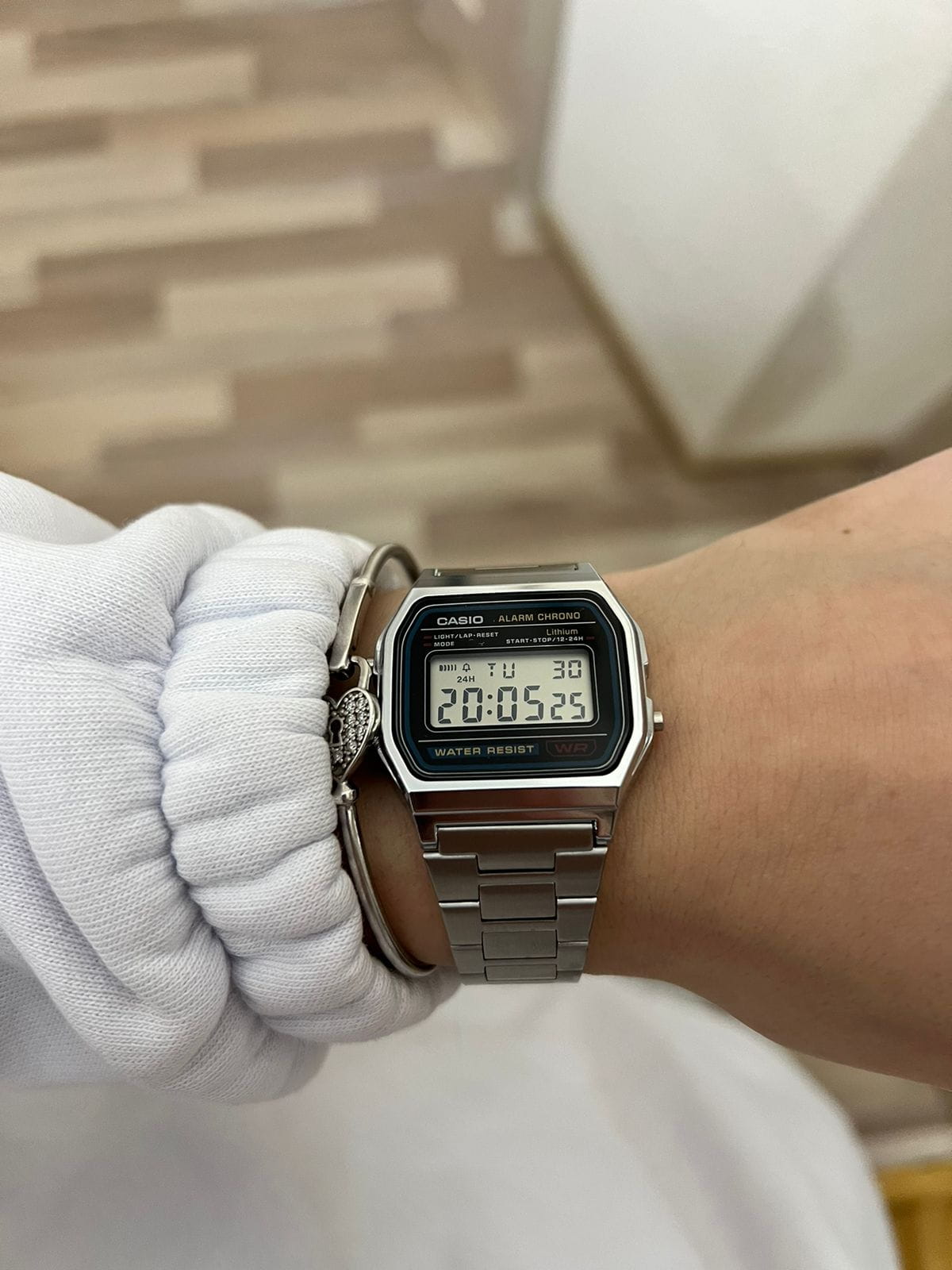 Модель A158WA-1DF из коллекции Vintage сочетает в себе классический дизайн и практичные функции. Корпус выполнен из пластика, а браслет из нержавеющей стали обеспечивает прочность и элегантный внешний вид.