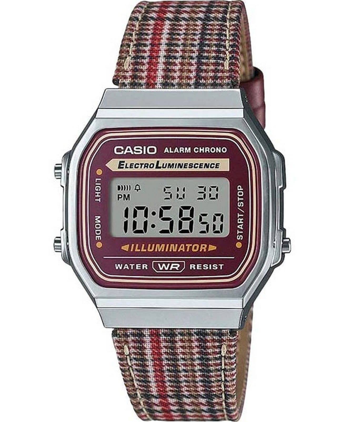 Японские наручные часы A168WEFL-5AEF из коллекции Illuminator являются отражением спортивного и винтажного стиля, подойдут к любому образу. Серебристый аксессуар с фирменным для Casio 8-угольным корпусом будет гармонично смотреться как с деловым пиджаком, так и с повседневной водолазкой. Оригинальности добавляет кожаный в шотландскую клетку. Ударопрочный корпусУдаропрочный корпусМеханизм заключён в корпус, выполненный из современных материалов, устойчивых к ударам, механическим повреждениям и падению с высоты: инновационный пластик, карбон, нержавеющая сталь, титан. и браслет с предохранительной застёжкой сделаны из нержавеющей стали 316L. Надёжное минеральное стекло. Срок работы батарейки - 3 года. Наличие будильника, секундомера, календаря. Светодиодная подсветкаСветодиодная подсветкаСветодиодная или LED-подсветка обеспечивает появление яркого холодного свечения за счёт LED-элементов - маленьких лампочек. Они потребляют минимальное количество энергии, чаще всего можно встретить 1 светодиод, в нижней части циферблата. дисплея. Габариты: 38 x 39,6 x 9,6 мм.