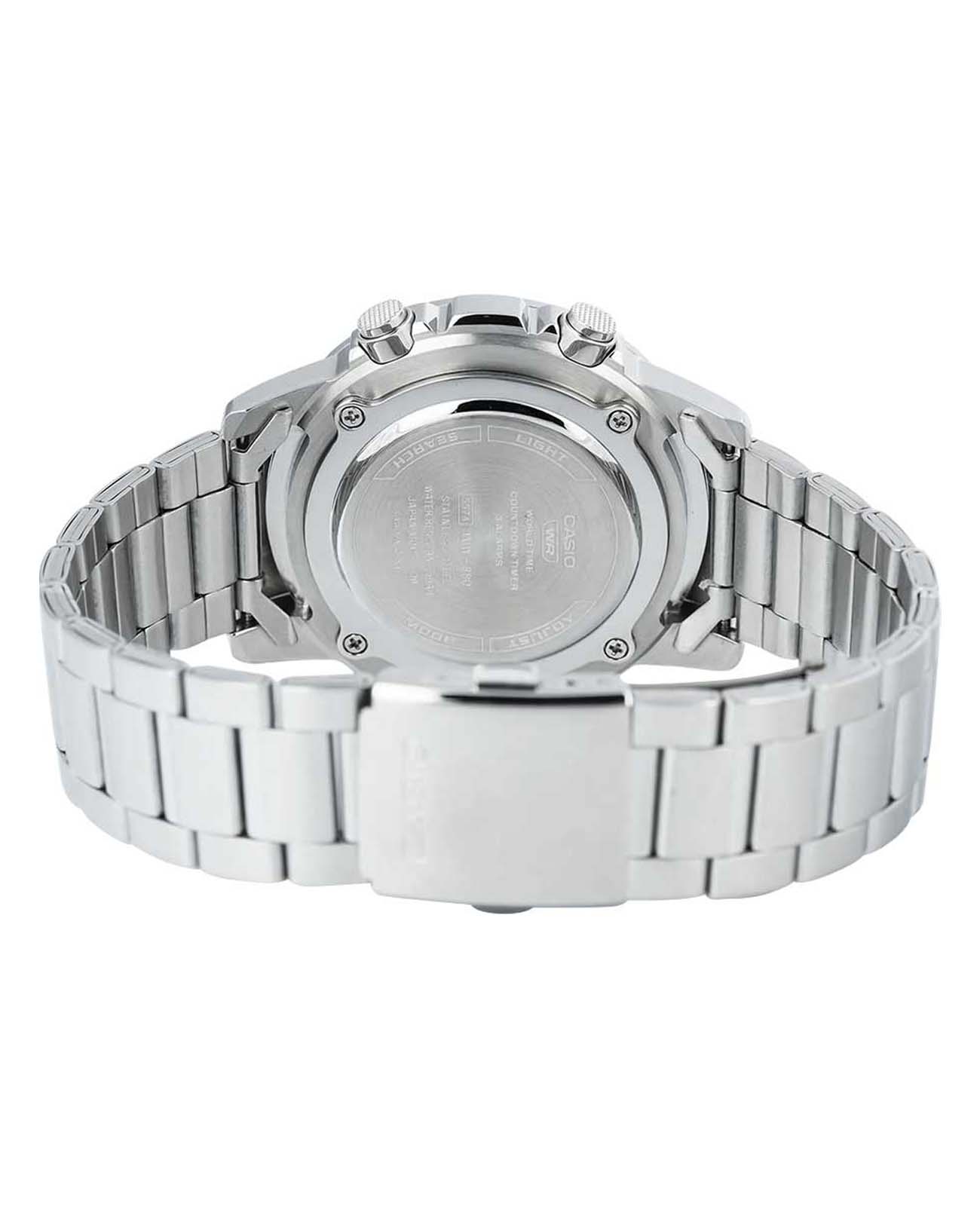 Спортивные японские мужские наручные часы Casio Collection AMW-880D-9AVDF (AMW-880D-9A) с минеральным стекломМинеральное стеклоМинеральное стекло представляет собой искусственно выращенный минерал кварца. Такое стекло отличается особой устойчивостью к повреждениям и царапинам. Уступает по некоторым качествам сапфировому стеклу., устойчивым к мелким механическим повреждениям. Циферблат подсвечивается светодиодомСветодиодная подсветкаСветодиодная или LED-подсветка обеспечивает появление яркого холодного свечения за счёт LED-элементов - маленьких лампочек. Они потребляют минимальное количество энергии, чаще всего можно встретить 1 светодиод, в нижней части циферблата.. НеобритовоеПодсветка NeobriteИспользование светонакопительных составов на основе сульфида цинка или алюмината стронция, яркий свет можно наблюдать на протяжении 6-10 часов после «зарядки» часов около источника света. светонакопительное покрытие обеспечивает длительное послесвечение в темноте даже после кратковременного нахождения на свету. Записная книжка на 30 ячеек памяти для записи имен и телефонных номеров, каждая запись может включать в себя текст из 8 букв и 16 цифр. 12-ти и 24-х часовой формат времени. СекундомерСекундомерСекундоме́р — прибор, способный измерять интервалы времени с точностью до долей секунды. с точностью показаний 1/100с и временем измерения 24ч. сплит-хронографСплит-хронографИспользуется для измерения продолжительности нескольких временных отрезков, начинающихся одновременно, а заканчивающихся в разное время.. Таймер обратного отсчета от 1мин до 24ч. Мировое время Мировое время Полезное часовое усложнение, отображающее время в основных городах и известных областях по всему миру, оно связано с часовыми поясами, удобно для путешественников и бизнесменов. – 30 городов (29 часовых поясов). Функция включения/отключения летнего времени.
