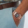 Лимитированная модель Casio G-Shock GMW-B5000GD-4ER, стальной корпус цвета розового золота. Стальной корпус цвета розового золота, браслет и задняя крышка часов защищены от царапин сверх-прочным ионным напылением. Внутри слой из материала Alpha Gel® и металлическая капсула с механизмом часов. Абсолютная ударопрочность, несмотря на использование в модели металла, вместо привычного полимера. Синхронизация времени со смартфоном и легкая настройка часов через Bluetooth, радио-синхронизация с атомными часами на разных континентах, улучшенная и еще более эффективная технология Tough Solar — питание часов от солнечного или искусственного света и еще более десятка функций. Модель является лимиткой и представлена ограниченным тиражом.