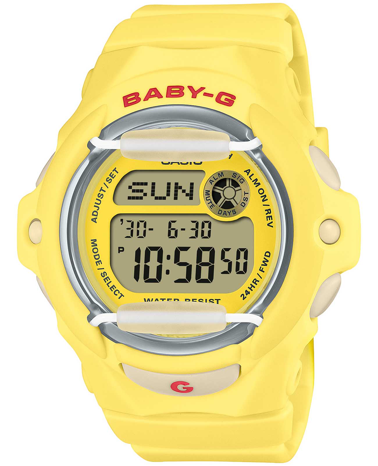 Японские женские часы-хронографХронографФункция позволяет измерять отрезки времени с особой точностью: часы, минуты, секунды. Верным признаком хронографа является наличие на циферблате 3 дополнительных окошек-счётчиков. Casio Baby-G BG-169CH-9 из коллекции Baby-G. Серия, которая выражает спортивность и цвет, которые являются основой бренда Baby-G. Минеральное стеклоМинеральное стеклоМинеральное стекло представляет собой искусственно выращенный минерал кварца. Такое стекло отличается особой устойчивостью к повреждениям и царапинам. Уступает по некоторым качествам сапфировому стеклу. устойчивое к появлению царапин, обладающее высокой прозрачностью. Корпус часов изготовлен из полимерного материала. Функции: автоматическая светодиодная подсветка.Необритовое покрытиеПодсветка NeobriteИспользование светонакопительных составов на основе сульфида цинка или алюмината стронция, яркий свет можно наблюдать на протяжении 6-10 часов после «зарядки» часов около источника света. продолжает светиться в темноте даже после непродолжительного пребывания на свету.Ударопрочный корпусУдаропрочный корпусМеханизм заключён в корпус, выполненный из современных материалов, устойчивых к ударам, механическим повреждениям и падению с высоты: инновационный пластик, карбон, нержавеющая сталь, титан. защищает механизм от ударов и вибрации. Функция Мирового времениМировое время Полезное часовое усложнение, отображающее время в основных городах и известных областях по всему миру, оно связано с часовыми поясами, удобно для путешественников и бизнесменов. . СекундомерСекундомерСекундоме́р — прибор, способный измерять интервалы времени с точностью до долей секунды. с точностью измерения 1/100 секунды и измерением до 23 часов 59 минут 59,99 cек. ТаймерТаймерОтсчитывает секунды в обратном направлении в заданном интервале времени. обратного отсчета (диапазон времени 24 часа), автоматический календарь, 12/24 отображение времени. 5 ежедневных будильниковБудильникБуди́льник — часы, в заданный момент времени подающие звуковой, световой и/или в редких случаях другой сигнал.. Функция записной книжки обеспечивает 25 сохраненных имен и телефонных номеров, которые всегда под рукой благодаря встроенной базе данных. Каждая запись может включать в себя текст из 8 букв и 12 цифр.Класс водозащиты: 200 метров, позволит плавать без погружения. Ремешок из полимерного материала на стандартной застежке.