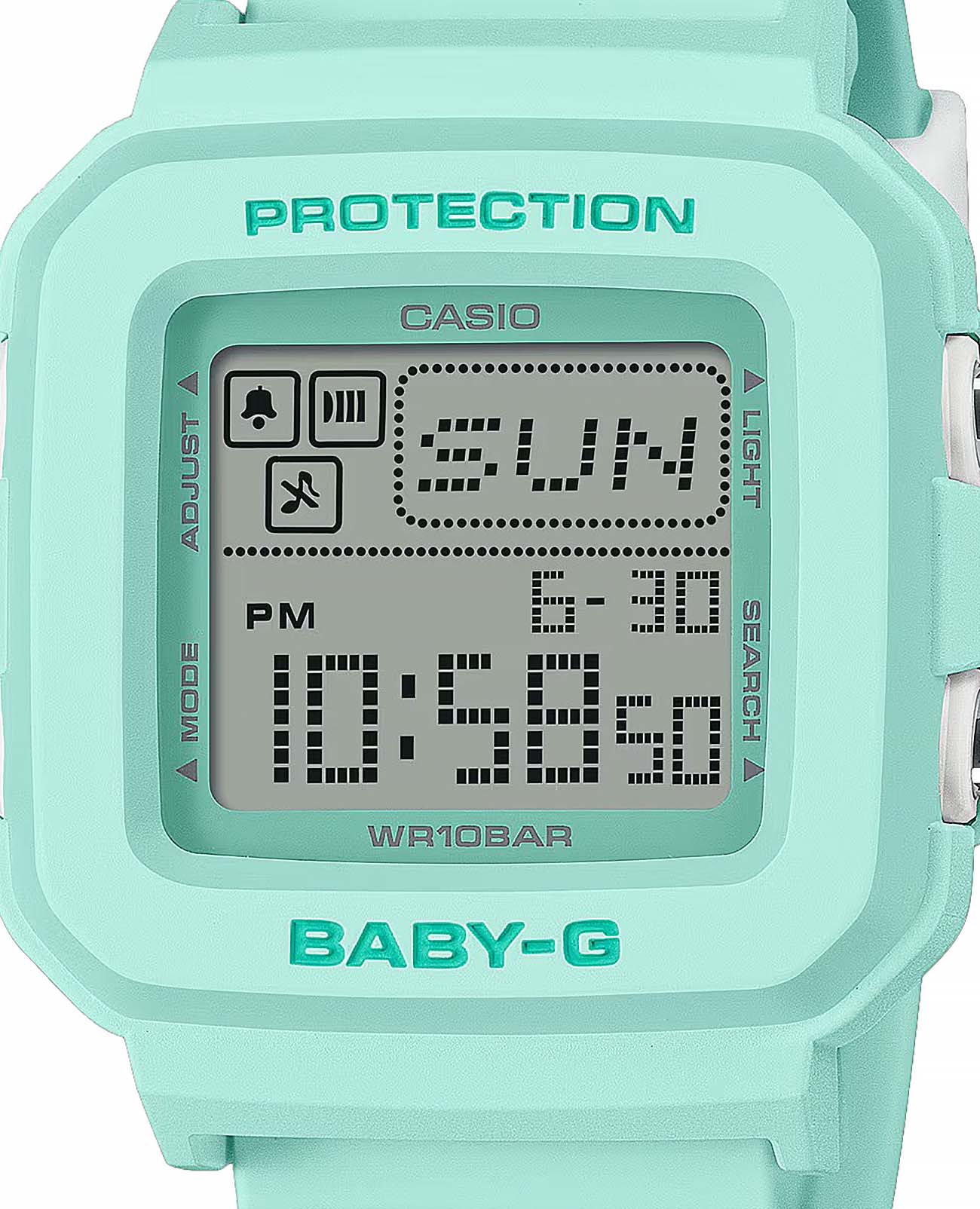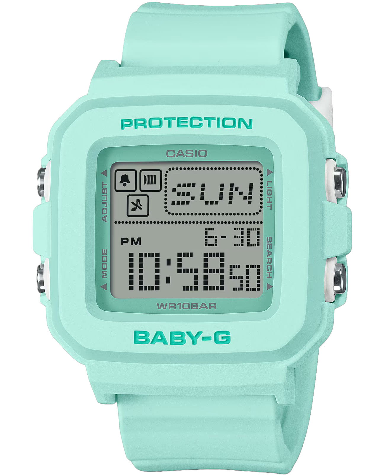 Современные надежные японские наручные женские часы Casio Baby-G BGD-10-3DR (BGD-10-3). Ударопрочный корпусУдаропрочный корпусМеханизм заключён в корпус, выполненный из современных материалов, устойчивых к ударам, механическим повреждениям и падению с высоты: инновационный пластик, карбон, нержавеющая сталь, титан. изготовлен из пластика. Минеральное стеклоМинеральное стеклоМинеральное стекло представляет собой искусственно выращенный минерал кварца. Такое стекло отличается особой устойчивостью к повреждениям и царапинам. Уступает по некоторым качествам сапфировому стеклу. устойчивое к появлению царапин, обладающее высокой прозрачностью. Водозащита: 100 метров, позволит плавать, нырять и заниматься другими водными видами спорта. БудильникБудильникБуди́льник — часы, в заданный момент времени подающие звуковой, световой и/или в редких случаях другой сигнал., таймерТаймерОтсчитывает секунды в обратном направлении в заданном интервале времени. и секундомерСекундомерСекундоме́р — прибор, способный измерять интервалы времени с точностью до долей секунды.. Срок жизни батареи 3 года. Пластиковый ремешок.