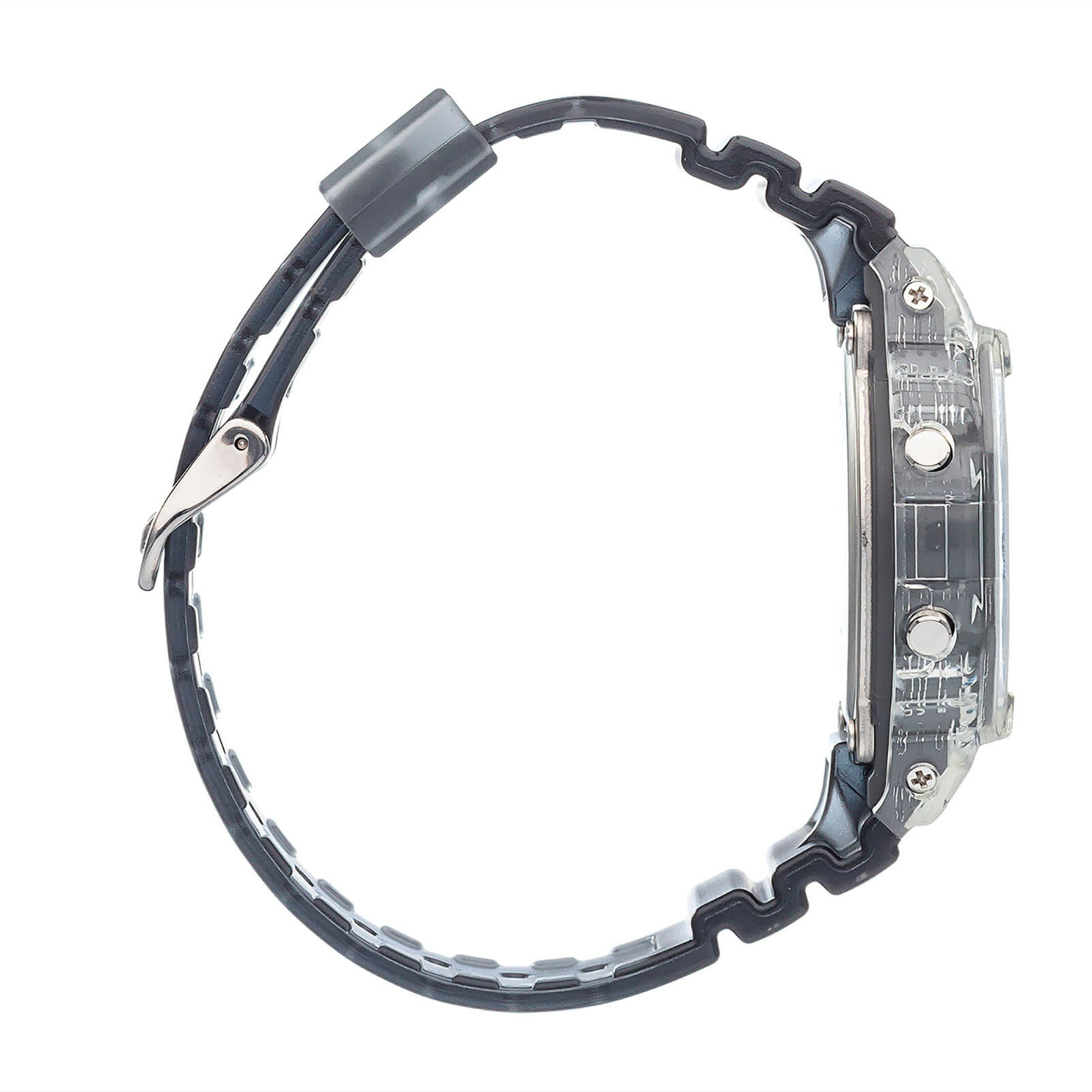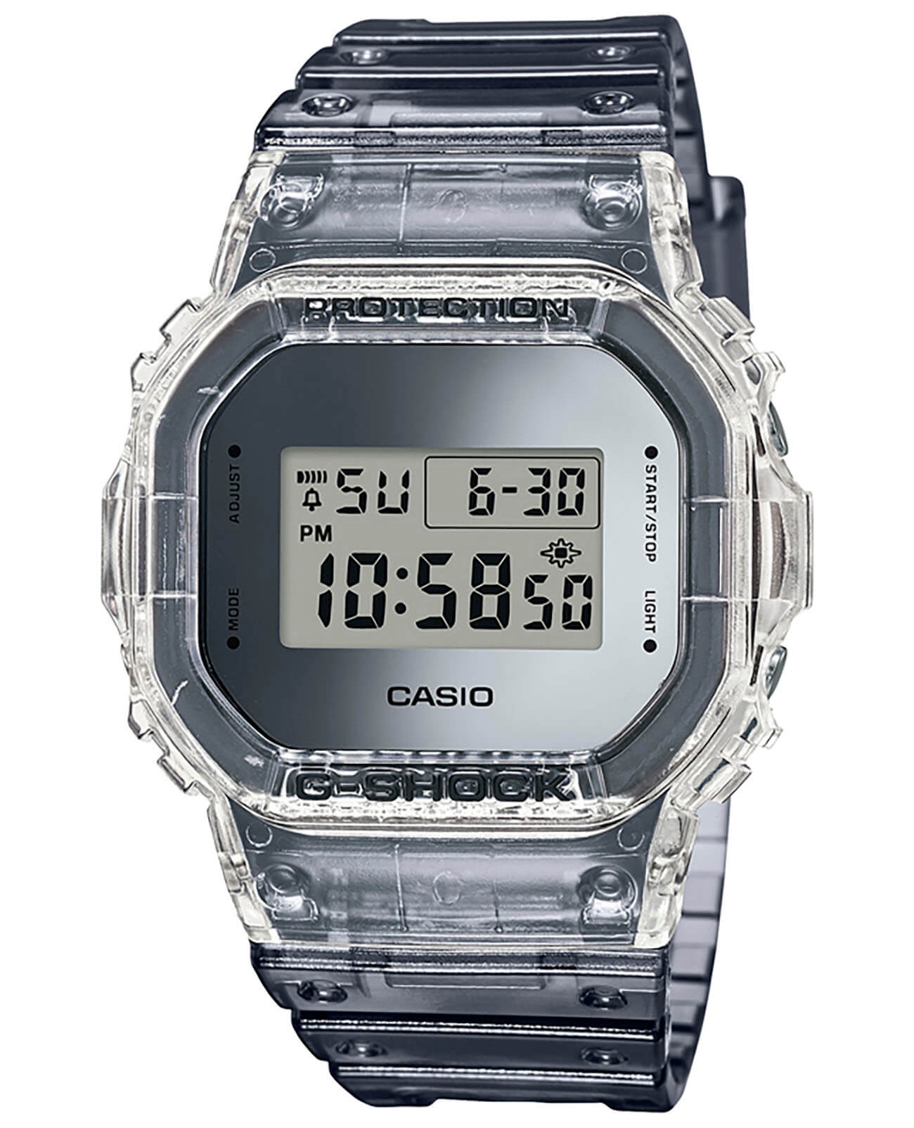 Наручные часы, заключённые в легендарный 8-угольный корпус, могут стать самой яркой деталью вашего образа, несмотря на сдержанную палитру. Полупрозрачная модель с металлическим оформлением циферблата выглядит, будто бы сделанная изо льда, напоминая о часах скелетонах. С таким аксессуаров вы точно будете становиться центром внимания любой компании. Срок службы батарейки, питающей кварцевый японский механизм - 2 года. Электролюминесцентная подсветкаЭлектролюминесцентная подсветкаЭлектролюминесцентная панель устанавливается под ЖК-экраном часов, при нажатии кнопки электричество преобразуется в свет за счёт подачи напряжения на атомы фосфора, такой тип подсветки позволяет освещать весь циферблат. сине-зелёного цвета. Устойчивый к большим нагрузкам противоударный корпусУдаропрочный корпусМеханизм заключён в корпус, выполненный из современных материалов, устойчивых к ударам, механическим повреждениям и падению с высоты: инновационный пластик, карбон, нержавеющая сталь, титан. из пластика. Водонепроницаемость 20 бар. Задняя крышка с гравировкой. 12/24-часовой формат отображения времени. Таймер, секундомер, будильник, хронографХронографФункция позволяет измерять отрезки времени с особой точностью: часы, минуты, секунды. Верным признаком хронографа является наличие на циферблате 3 дополнительных окошек-счётчиков.. Габариты: 48,9 x 42,8 x 13,4 мм.