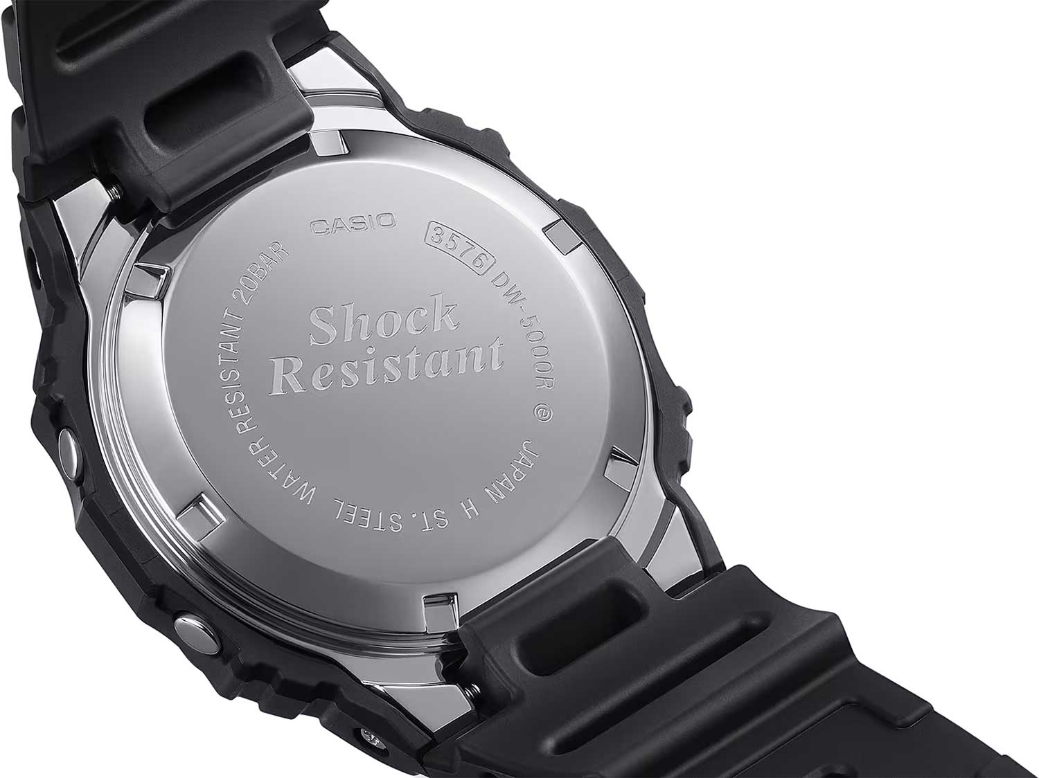 Японские мужские часы-хронографХронографФункция позволяет измерять отрезки времени с особой точностью: часы, минуты, секунды. Верным признаком хронографа является наличие на циферблате 3 дополнительных окошек-счётчиков. Casio G-Shock DW-5000R-1A из коллекции G-Shock. Минеральное стеклоМинеральное стеклоМинеральное стекло представляет собой искусственно выращенный минерал кварца. Такое стекло отличается особой устойчивостью к повреждениям и царапинам. Уступает по некоторым качествам сапфировому стеклу. устойчивое к появлению царапин, обладающее высокой прозрачностью. Корпус часов изготовлен из полимерного материала и стали. Электролюминесцентная подсветкаЭлектролюминесцентная подсветкаЭлектролюминесцентная панель устанавливается под ЖК-экраном часов, при нажатии кнопки электричество преобразуется в свет за счёт подачи напряжения на атомы фосфора, такой тип подсветки позволяет освещать весь циферблат. освещает весь циферблат, после отпускания кнопки свечение продолжается еще некоторое время. Ударопрочный корпусУдаропрочный корпусМеханизм заключён в корпус, выполненный из современных материалов, устойчивых к ударам, механическим повреждениям и падению с высоты: инновационный пластик, карбон, нержавеющая сталь, титан. защищает механизм от ударов и вибрации. СекундомерСекундомерСекундоме́р — прибор, способный измерять интервалы времени с точностью до долей секунды. с точностью измерения 1/100 секунды и измерением до 23 часов 59 минут 59,99 cек. ТаймерТаймерОтсчитывает секунды в обратном направлении в заданном интервале времени. обратного отсчета (диапазон времени 24 часа), автоматический календарь, 12/24 отображение времени, будильникБудильникБуди́льник — часы, в заданный момент времени подающие звуковой, световой и/или в редких случаях другой сигнал.. Задняя крышка с винтовым фиксатором. Батарейка рассчитана на 2 года. Класс водозащиты: 200 метров, позволит плавать, нырять и заниматься другими водными видами спорта. Ремешок из полимерного материала на стандартной застежке.