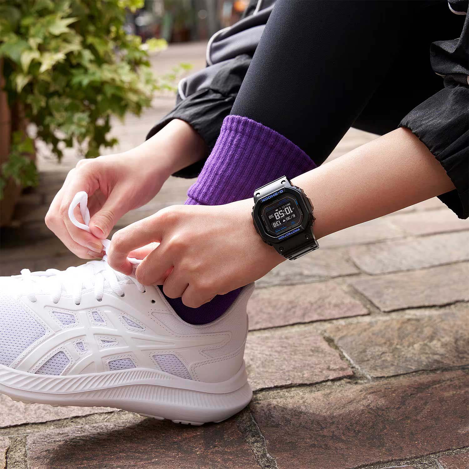 Ваши тренировки выйдут на новый уровень благодаря этой современной новинке от Casio. Японские спортивные наручные часы в серии G-SQUAD из биопластика Casio G-Shock DW-H5600-1A2DR (DW-H5600-1A2), кварцевый механизм с высокой точностью. Класс водозащиты: 200 метров, позволит плавать, нырять и заниматься другими водными видами спорта. Корпус часов изготовлен из пластика. Мдель в серии G-SQUAD выполнена из биопластика, который изготавливается из возобновляемых органических ресурсов. Мультиспортивный профили: бег, ходьба, езда на велосипеде и др. Питание от солнечной энергии Tough SolarTough SolarТехнология основана на подзарядке аккумулятора от источника солнечного света, специальная панель улавливает солнечные лучи и преобразует их в энергию для работы часов. Достаточно пары минут нахождения на солнце для функционирования часов в течении суток. - солнечные батарейки большой мощности, индикатор заряда батареи. Функция автоматического сохранения энергии. Время работы аккумулятора без подзарядки: 35ч, 1 месяц (без использования пульсометра), при включенной функции сохранения энергии до 11 месяцев. Возможность зарядки через специальный кабель с разъемом USB типа A. Ударопрочный корпусУдаропрочный корпусМеханизм заключён в корпус, выполненный из современных материалов, устойчивых к ударам, механическим повреждениям и падению с высоты: инновационный пластик, карбон, нержавеющая сталь, титан. защищает механизм от ударов и вибрации. Циферблат подсвечивается светодиодомСветодиодная подсветкаСветодиодная или LED-подсветка обеспечивает появление яркого холодного свечения за счёт LED-элементов - маленьких лампочек. Они потребляют минимальное количество энергии, чаще всего можно встретить 1 светодиод, в нижней части циферблата., функция автоподсветки освещает циферблат при повороте часов к лицу. Настраиваемое послесвечение 1,5 или 3сек. Цвет подсветки: белый. Дисплей mip LCD позволяет легко считывать данные даже в темноте. 12-ти и 24-х часовой формат времени. СекундомерСекундомерСекундоме́р — прибор, способный измерять интервалы времени с точностью до долей секунды. с точностью показаний 1с и временем измерения 100ч. Сплит-хронографСплит-хронографИспользуется для измерения продолжительности нескольких временных отрезков, начинающихся одновременно, а заканчивающихся в разное время.. ТаймерТаймерОтсчитывает секунды в обратном направлении в заданном интервале времени. обратного отсчета от 1сек до 1ч. Мировое времяМировое время Полезное часовое усложнение, отображающее время в основных городах и известных областях по всему миру, оно связано с часовыми поясами, удобно для путешественников и бизнесменов. – 38 городов (38 часовых поясов), всемирное координированное время (UTCUTCВсемирное кординационное время, не имеющее привязки к географическому положению Гринвича, основывается на атомном отсчёте времени. Регулировка времени осуществляется более точно, чем устаревшее GMT.