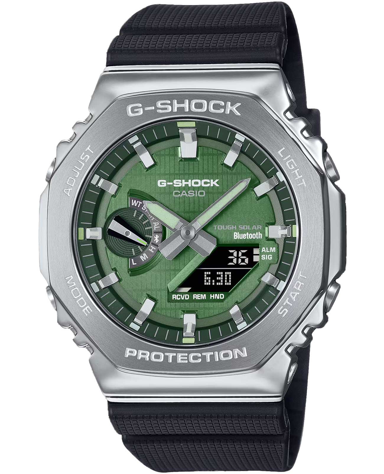 Мужские кварцевые часы Casio G-Shock GBM-2100A-1A3. Корпус часов изготовлен из нержавеющей стали. Стрелки с люминесцентным покрытиемЛюминесцентное покрытиеПозволяет считывать показания времени в темноте. Производители наносят на стрелки, часовые индексы, безель или поверхность циферблата светонакопительный состав, дающий холодное свечение.. Водозащита: 200 метров, позволит плавать, нырять и заниматься другими водными видами спорта. Минеральное стеклоМинеральное стеклоМинеральное стекло представляет собой искусственно выращенный минерал кварца. Такое стекло отличается особой устойчивостью к повреждениям и царапинам. Уступает по некоторым качествам сапфировому стеклу. устойчивое к появлению царапин, обладающее высокой прозрачностью.