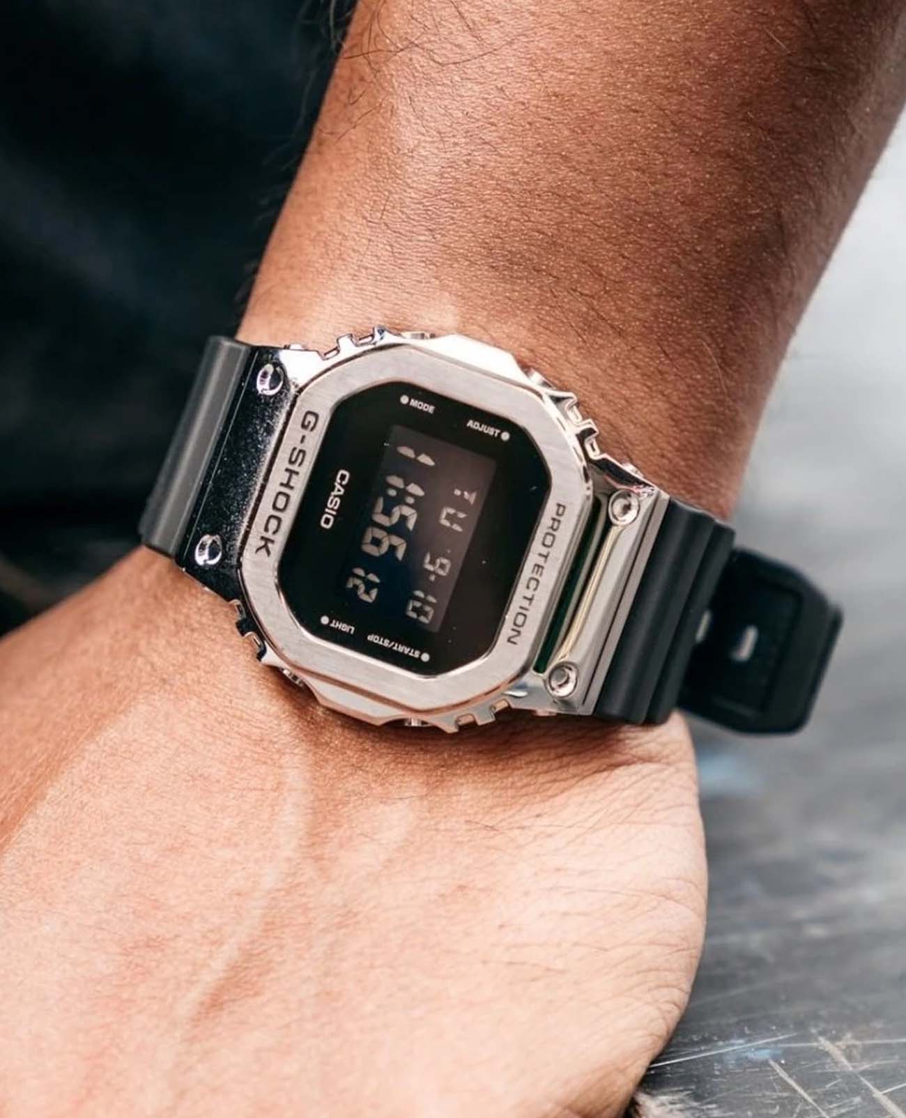 Японские ударопрочныеУдаропрочный корпусМеханизм заключён в корпус, выполненный из современных материалов, устойчивых к ударам, механическим повреждениям и падению с высоты: инновационный пластик, карбон, нержавеющая сталь, титан. мужские часы-хронографХронографФункция позволяет измерять отрезки времени с особой точностью: часы, минуты, секунды. Верным признаком хронографа является наличие на циферблате 3 дополнительных окошек-счётчиков. Casio G-Shock GM-5600U-1DR в стальном корпусе. Минеральное стеклоМинеральное стеклоМинеральное стекло представляет собой искусственно выращенный минерал кварца. Такое стекло отличается особой устойчивостью к повреждениям и царапинам. Уступает по некоторым качествам сапфировому стеклу. устойчивое к появлению царапин, обладающее высокой прозрачностью. Ударопрочный корпусУдаропрочный корпусМеханизм заключён в корпус, выполненный из современных материалов, устойчивых к ударам, механическим повреждениям и падению с высоты: инновационный пластик, карбон, нержавеющая сталь, титан. защищает механизм от ударов и вибрации. Электролюминесцентная подсветкаЭлектролюминесцентная подсветкаЭлектролюминесцентная панель устанавливается под ЖК-экраном часов, при нажатии кнопки электричество преобразуется в свет за счёт подачи напряжения на атомы фосфора, такой тип подсветки позволяет освещать весь циферблат. освещает весь циферблат. Включение/выключение звукового сигнала нажатия кнопки. 12/24-часовой формат времени. Мировое время Мировое время Полезное часовое усложнение, отображающее время в основных городах и известных областях по всему миру, оно связано с часовыми поясами, удобно для путешественников и бизнесменов. 31 часовой пояс (48 городов + всемирное координированное время), переход на летнее время вкл./выкл. СекундомерСекундомерСекундоме́р — прибор, способный измерять интервалы времени с точностью до долей секунды.. ТаймерТаймерОтсчитывает секунды в обратном направлении в заданном интервале времени.. 5 ежедневных будильниковБудильникБуди́льник — часы, в заданный момент времени подающие звуковой, световой и/или в редких случаях другой сигнал.. Почасовой сигнал времени. Класс водозащиты: 200 метров, позволит плавать, нырять и заниматься другими водными видами спорта. Ремешок из полимерного материала на стандартной застежке.