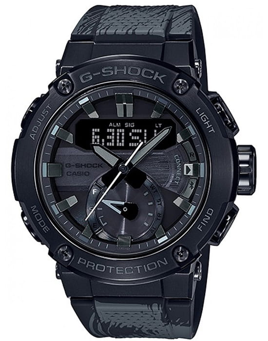 Компания Casio представляет совместую работу с китайским художников Chen YingJie (Чэнь Инцзе), который в своем творчестве использует традиционные восточные чернила и западное уличное искусство.Две базовые модели MT-G и G-STEEL были специально отобраны самим Ченом Инцзе на основе их мощных металлических конструкций. Тема дизайна для этой модели - китайская философия Тайцзи. Философия тайцзи - концепция того, что все естественные вещи и законы в мире меняются с течением времени. Это выражается в технологии черного ионного напыления и оригинальной печати, применяемой в дизайне этих моделей. Задняя крышка модели G-STEEL выгравирована с подписью Чэнь Инцзе. Эти модели поставляются уникальной упаковке в ограниченном количестве. Функции GST:Ударопрочность, Bluetooth, Солнечный аккумулятор, Необрит, Функция мирового времени, Секундомер, Таймер, 5 ежедневных будильников, Функция поиска телефона,Автоматический календарь, Минеральное стекло, Водонепроницаемость до 200м.