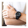 Спортивные японские мужские часы с секундомеромСекундомерСекундоме́р — прибор, способный измерять интервалы времени с точностью до долей секунды. и хронографомХронографФункция позволяет измерять отрезки времени с особой точностью: часы, минуты, секунды. Верным признаком хронографа является наличие на циферблате 3 дополнительных окошек-счётчиков. Casio G-Steel GST-B400BB-1A, кварцевый механизм с высокой точностью. Питание от солнечной энергии Tough Solar - солнечные батарейки большой мощности, индикатор заряда батареи. Функция автоматического сохранения энергии. Время работы аккумулятора без подзарядки приблизительно 7 месяцев, при включенной функции сохранения энергии приблизительно 18 месяцев. Ударопрочный корпусУдаропрочный корпусМеханизм заключён в корпус, выполненный из современных материалов, устойчивых к ударам, механическим повреждениям и падению с высоты: инновационный пластик, карбон, нержавеющая сталь, титан. защищает механизм от ударов и вибрации. . СекундомерСекундомерСекундоме́р — прибор, способный измерять интервалы времени с точностью до долей секунды. с точностью показаний 1/100с (до 1ч) и 1с (после 1ч) и временем измерения 24ч. Мировое времяМировое время Полезное часовое усложнение, отображающее время в основных городах и известных областях по всему миру, оно связано с часовыми поясами, удобно для путешественников и бизнесменов. – 38 городов (38 часовых поясов), всемирное координированное время (UTC). Автоматический переход на зимнее и летнее время, возможность включения/отключения данной функции. Переключение между домашним и мировым временем. Беспроводная технология BluetoothBluetoothСовременная технология, позволяющая синхронизировать часы с телефоном и переносить данные. Часы с Bluetooth расширяют возможности вашего смартфона и делают его использование ещё более удобным. со сверхнизким потреблением энергии для синхронизации со смартфоном. Автоматическое подключение к серверу времени через смартфон для корректировки текущего и настроек мирового времени. Функции перемещения стрелок для беспрепятственного просмотра информации на дисплее, отключения/включения звука, поиска телефона. Отображение дней недели на шести языках. Смена отображения даты/месяца. Стальная задняя крышка крепится на 4-х винтах. Класс водозащиты: 200 метров, позволит плавать, нырять и заниматься другими водными видами спорта. Ремешок на стандартной застежке.