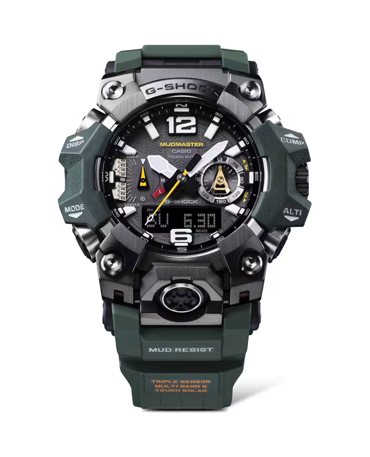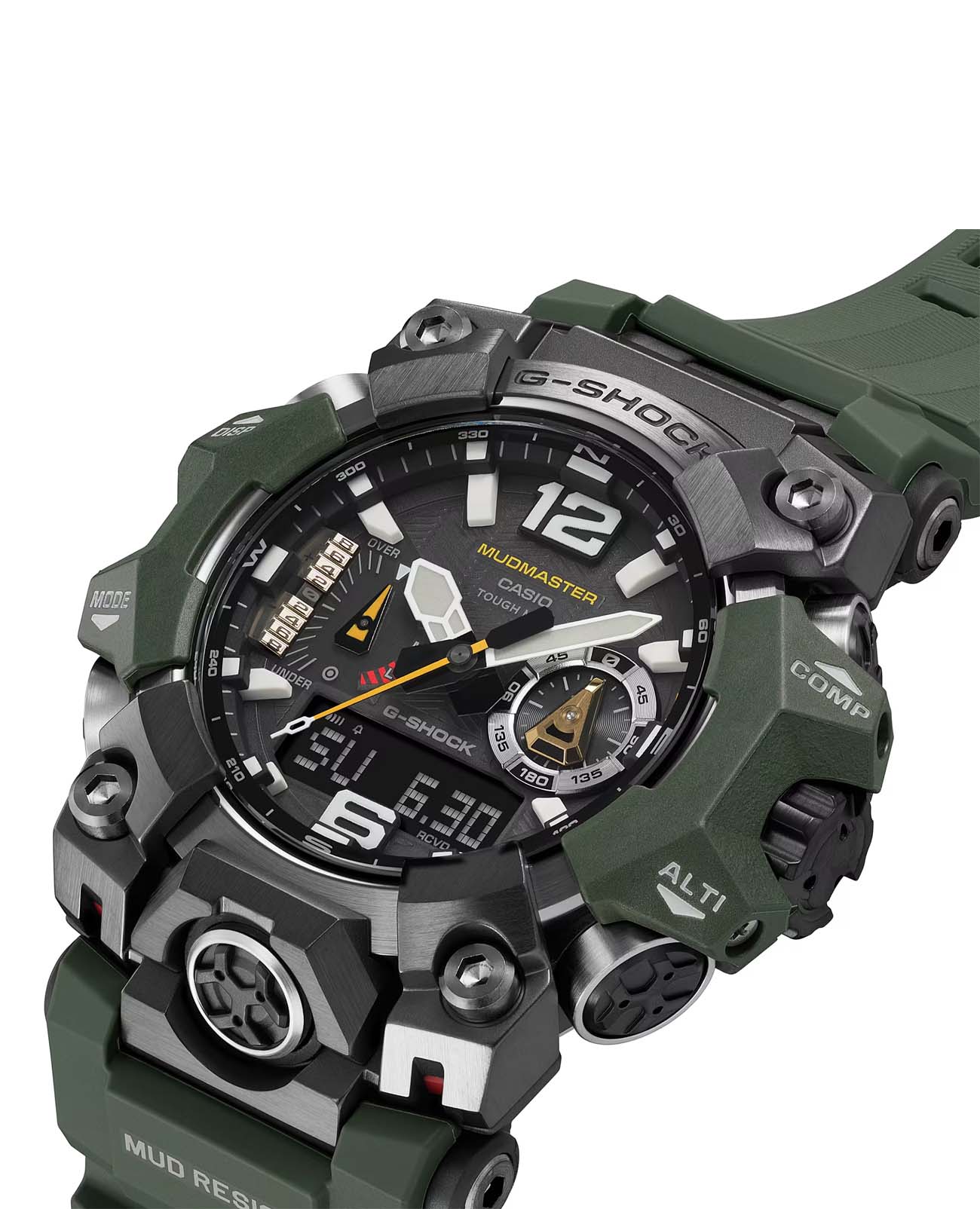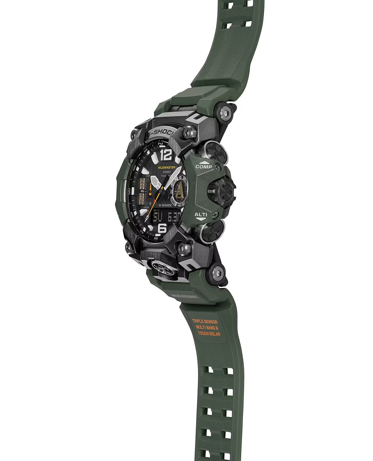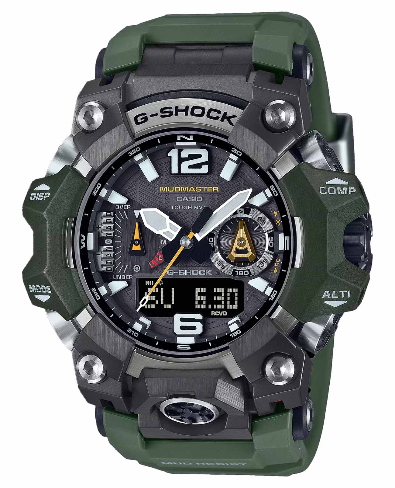 Спортивные японские мужские часы с секундомеромСекундомерСекундоме́р — прибор, способный измерять интервалы времени с точностью до долей секунды. и хронографомХронографФункция позволяет измерять отрезки времени с особой точностью: часы, минуты, секунды. Верным признаком хронографа является наличие на циферблате 3 дополнительных окошек-счётчиков. Casio G-Shock GWG-B1000-3ADR, кварцевый механизм с высокой точностью. Часы G-SHOCK Master из линейки G, разработанные для профессионалов, работающих в самых суровых условиях, оснащены еще более совершенной функциональностью. Питание от солнечной энергии Tough Solar - солнечные батарейки большой мощности, индикатор заряда батареи. Функция автоматического сохранения энергии. Время работы аккумулятора без подзарядки приблизительно 5 месяцев, при включенной функции сохранения энергии приблизительно 18 месяцев. Ударопрочный корпусУдаропрочный корпусМеханизм заключён в корпус, выполненный из современных материалов, устойчивых к ударам, механическим повреждениям и падению с высоты: инновационный пластик, карбон, нержавеющая сталь, титан. с DLC-покрытиемDLC-покрытиеDiamond like carbon - одно из лучших видов покрытия, представляющее собой углерод с алмазными свойствами. На поверхность материала наносятся распавшиеся молекулы углерода, превращающиеся в плёнку из алмазоподобных связей, которая перенимает твёрдость алмаза. защищает механизм от ударов и вибрации. СекундомерСекундомерСекундоме́р — прибор, способный измерять интервалы времени с точностью до долей секунды. с точностью показаний 1с и временем измерения 24ч. Мировое времяМировое время Полезное часовое усложнение, отображающее время в основных городах и известных областях по всему миру, оно связано с часовыми поясами, удобно для путешественников и бизнесменов. – 27 часовых поясов. Встроенный GPSGPSСистема спутниковой навигации. Часы оснащены приёмником GPS-сигнала, который получает необходимую информацию по GSM, GPRS, со спутников. Принимая сигнал, наручные часы могут установить точные показатели времени и даты, часовой пояс, сообщить местоположение своего владельца.