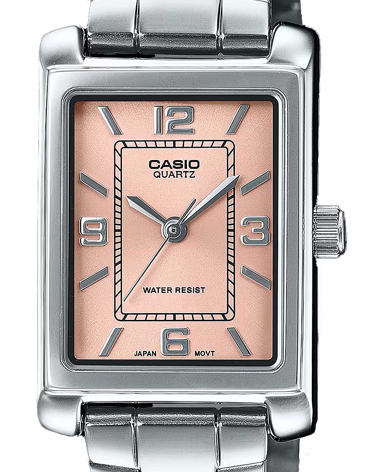 Женские кварцевые часы LTP-1234DD-4A. Корпус часов изготовлен из нержавеющей стали. Водозащита: 30 метров, позволит защитить корпус от случайных брызг или капель дождя. Стальной браслет на раскладной застёжкеРаскладная застёжкаТакой тип застёжки используется только на браслетах из металла. Она никогда не раскрывается полностью, происходит разделение на 2 и более частей. Раскладывающая застёжка снизит вероятность потери часов к минимуму.. Минеральное стеклоМинеральное стеклоМинеральное стекло представляет собой искусственно выращенный минерал кварца. Такое стекло отличается особой устойчивостью к повреждениям и царапинам. Уступает по некоторым качествам сапфировому стеклу. устойчивое к появлению царапин, обладающее высокой прозрачностью.