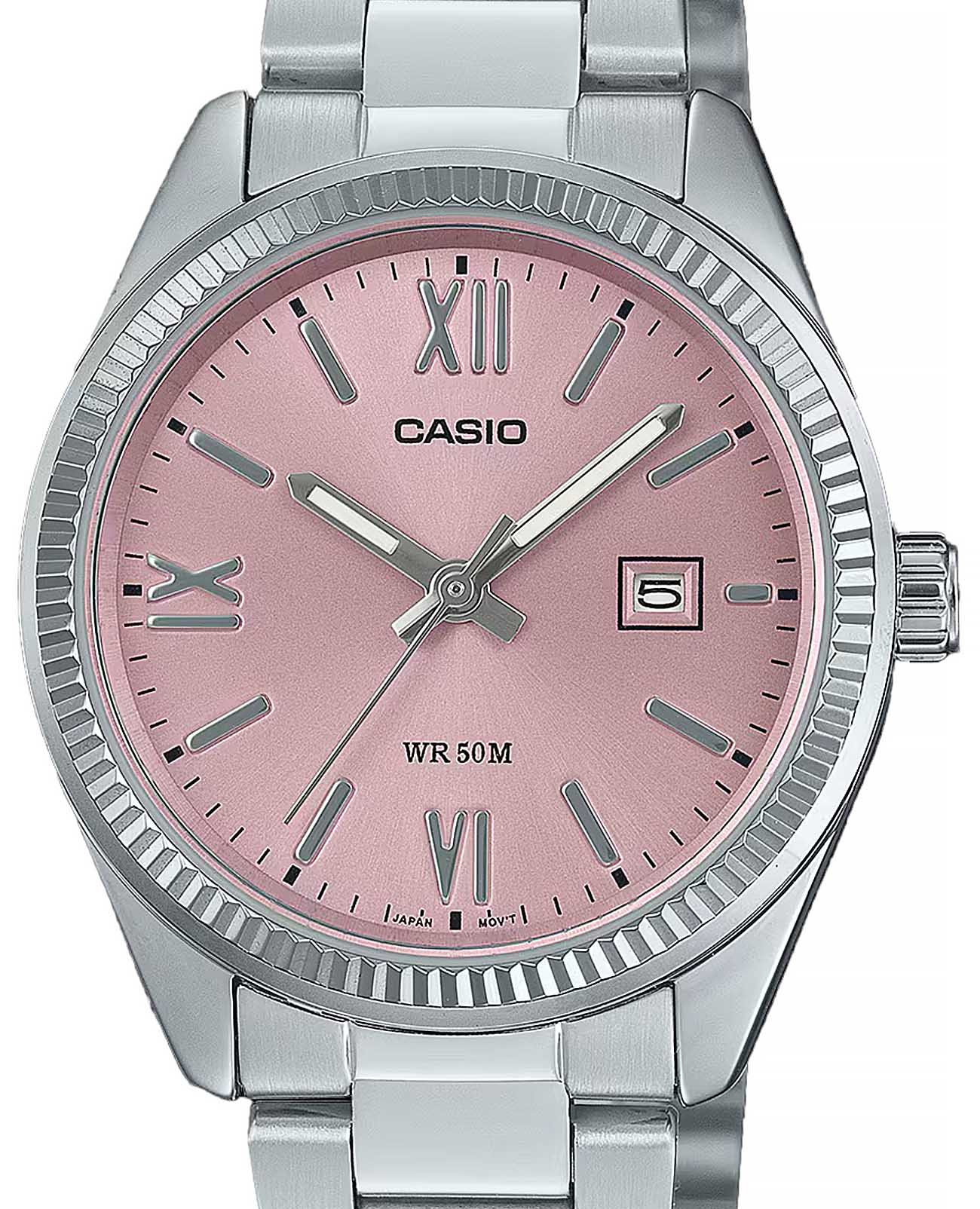 Японские женские часы Casio Collection LTP-1302DD-4A1V с минеральным стекломМинеральное стеклоМинеральное стекло представляет собой искусственно выращенный минерал кварца. Такое стекло отличается особой устойчивостью к повреждениям и царапинам. Уступает по некоторым качествам сапфировому стеклу. изящно смотрятся на запястье, они привлекают классическим исполнением и правильной геометрией. Минималистичная модель станет отличным решением для любого случая: на работу, переговоры с деловыми партнёрами, прогулку с друзьями или праздничный вечер. Отсутствуют лишние детали, что позволяет часам быть актуальными на долгие годы. Корпус выполнен из нержавеющей стали 316L, отличающейся долговечностью и устойчивостью к повреждениям и царапинам. Модель комплектуется надёжным механизмом, точность хода которого составляет +/- 20 сек/мес. Стрелки с люминесцентным покрытиемЛюминесцентное покрытиеПозволяет считывать показания времени в темноте. Производители наносят на стрелки, часовые индексы, безель или поверхность циферблата светонакопительный состав, дающий холодное свечение..