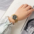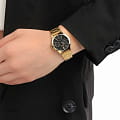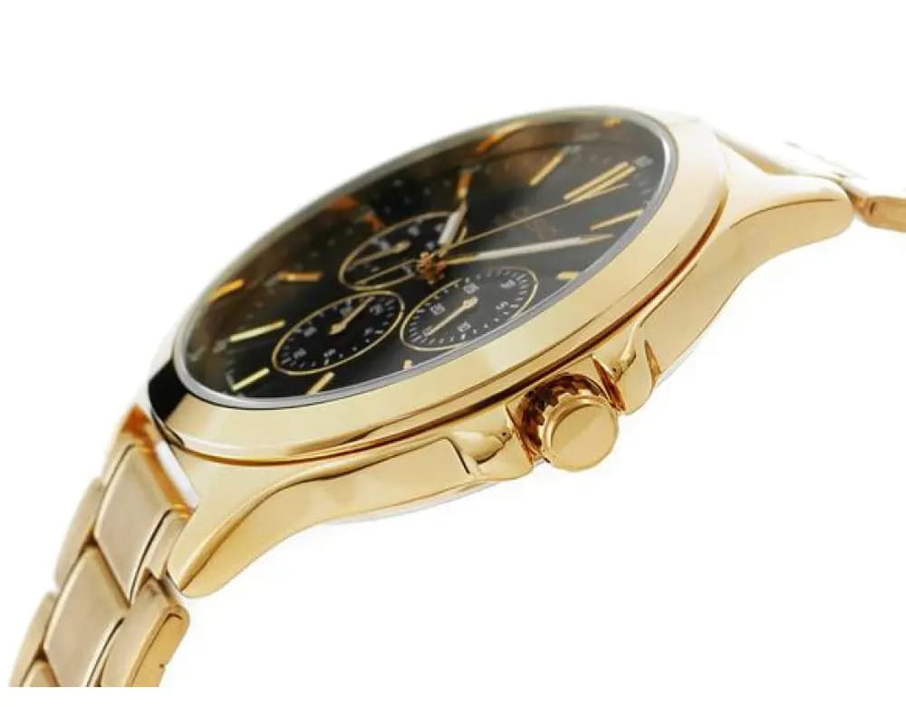 Брендовый аксессуар с чёрным циферблатом выполнен из стали с IP-покрытиемIP-покрытиеМетод ионного напыления. Демонстрирует повышенную устойчивость к истиранию, окислению и химическим веществам. Под воздействием высокого давления и температуры около 1500°C молекулы металла надёжно соединяются с частицами корпуса часов.. Наручные часы подойдут к любому образу, давая простор для экспериментов со стилями. Кварцевый японский механизм с точностью хода +/- 20 секунд в месяц. Надёжное минеральное стеклоМинеральное стеклоМинеральное стекло представляет собой искусственно выращенный минерал кварца. Такое стекло отличается особой устойчивостью к повреждениям и царапинам. Уступает по некоторым качествам сапфировому стеклу.. Люминесцентная подсветкаЛюминесцентное покрытиеПозволяет считывать показания времени в темноте. Производители наносят на стрелки, часовые индексы, безель или поверхность циферблата светонакопительный состав, дающий холодное свечение.. Водостойкость до 3 бар. Отображение текущего числа и дня недели.
