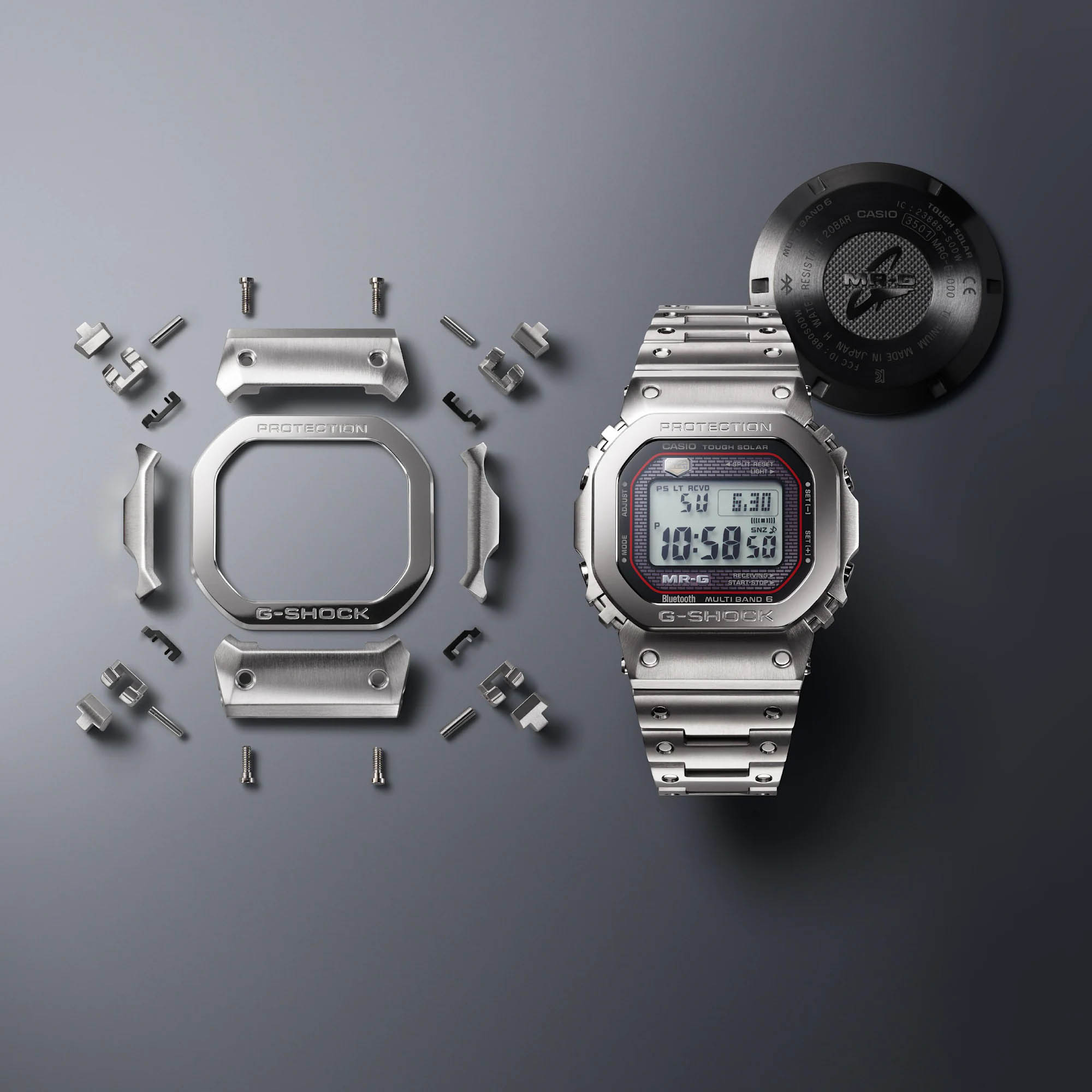 Премиальные японские мужские противоударные часы Casio G-Shock MRG-B5000D-1DR (MRG-B5000D-1), электронный механизм с высокой точностью. Класс водозащиты: 200 метров, позволит плавать, нырять и заниматься другими водными видами спорта. Корпус часов изготовлен из титана, цвета.