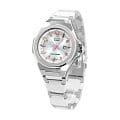 Модель сочетает несколько вариаций розового: металлизированные стрелки, индексы, пастельный оттенок металлического ремешка. Такое исполнение поможет девушкам, ведущим активный образ жизни, не забывать о своей женственной натуре. Наручные часы реализуют технологию Tough SolarTough SolarТехнология основана на подзарядке аккумулятора от источника солнечного света, специальная панель улавливает солнечные лучи и преобразует их в энергию для работы часов. Достаточно пары минут нахождения на солнце для функционирования часов в течении суток., получая питание от солнца и искусственных источников света. При полностью зараженной батарейке японский кварцевый механизм способен проработать до 5 месяцев без подзарядки. Противоударный корпусУдаропрочный корпусМеханизм заключён в корпус, выполненный из современных материалов, устойчивых к ударам, механическим повреждениям и падению с высоты: инновационный пластик, карбон, нержавеющая сталь, титан. сделан из нержавеющей стали 316L, что позволяет не бояться последствий ударов, падения. Циферблат оснащён минеральным стеклом, оно отличается прочностью, устойчивостью к образованию царапин. Водостойкость до 10 бар. Стрелки покрыты светонакопительным люминесцентным составомЛюминесцентное покрытиеПозволяет считывать показания времени в темноте. Производители наносят на стрелки, часовые индексы, безель или поверхность циферблата светонакопительный состав, дающий холодное свечение.. На позиции 3 часов размещена апертура текущего числа. Габариты: 37,1 x 42,4 x 10,5 мм.