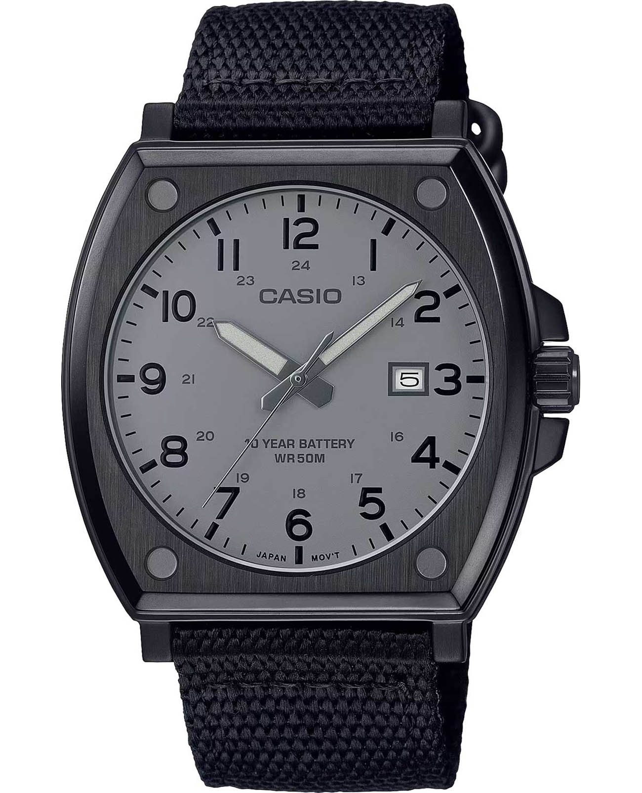 Японские мужские часы с минеральным стекломМинеральное стеклоМинеральное стекло представляет собой искусственно выращенный минерал кварца. Такое стекло отличается особой устойчивостью к повреждениям и царапинам. Уступает по некоторым качествам сапфировому стеклу. Casio Collection MTP-E715C-8A, кварцевый механизм с высокой точностью. Корпус часов изготовлен из стали с IP-покрытиемIP-покрытиеМетод ионного напыления. Демонстрирует повышенную устойчивость к истиранию, окислению и химическим веществам. Под воздействием высокого давления и температуры около 1500°C молекулы металла надёжно соединяются с частицами корпуса часов.. 12-ти и 24-х часовой формат времени. Окошко даты находится в положении 3 часа. Стрелки с люминесцентным покрытиемЛюминесцентное покрытиеПозволяет считывать показания времени в темноте. Производители наносят на стрелки, часовые индексы, безель или поверхность циферблата светонакопительный состав, дающий холодное свечение.. Батарея рассчитана на 10 лет. Заводная головка с защитой. Класс водозащиты: 50 метров, позволит защитить корпус от случайных брызг или капель дождя. Тканевый ремешок на стандартной застёжке.