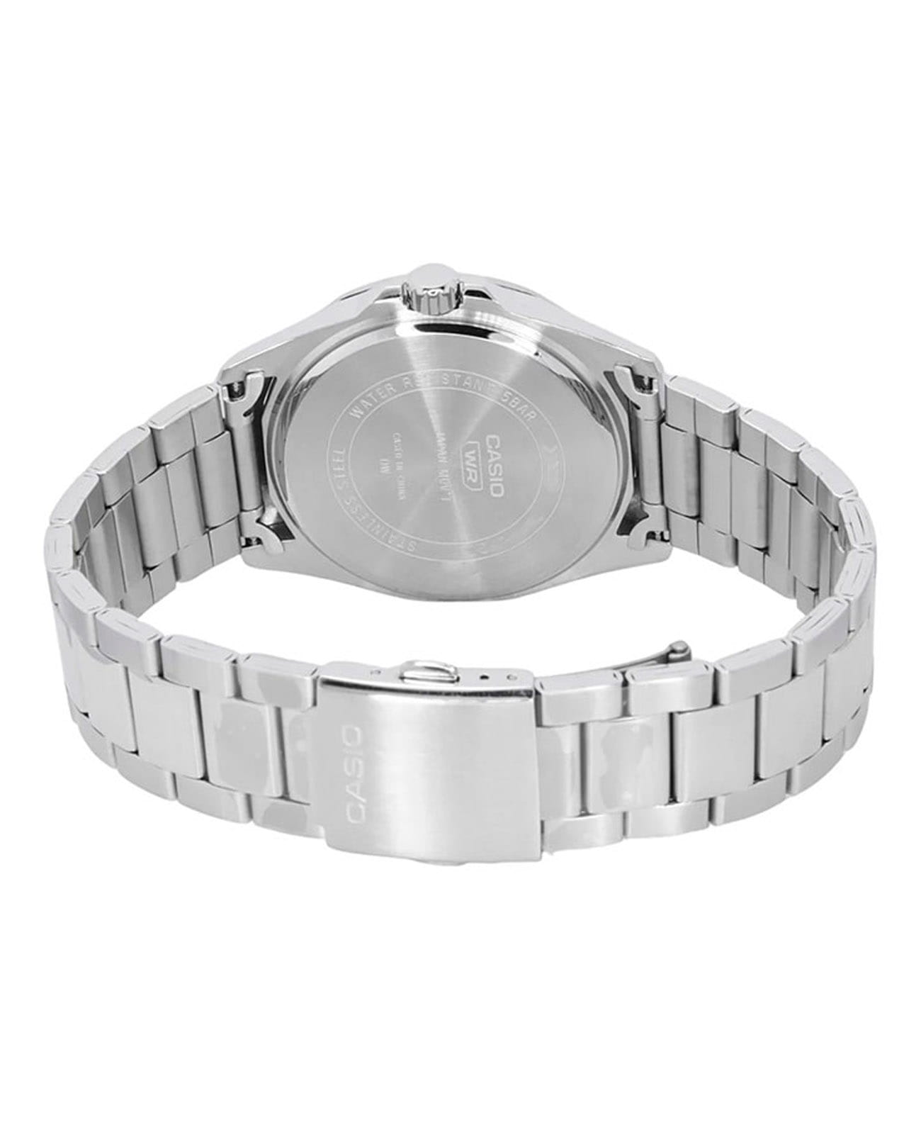 Японские мужские часы с минеральным стекломМинеральное стеклоМинеральное стекло представляет собой искусственно выращенный минерал кварца. Такое стекло отличается особой устойчивостью к повреждениям и царапинам. Уступает по некоторым качествам сапфировому стеклу. Casio Collection MTP-E725D-3A, кварцевый механизм с высокой точностью. Корпус часов изготовлен из стали. Стрелки и метки с люминесцентным покрытиемЛюминесцентное покрытиеПозволяет считывать показания времени в темноте. Производители наносят на стрелки, часовые индексы, безель или поверхность циферблата светонакопительный состав, дающий холодное свечение.. Метки в виде штрихов. Окошко даты находится в положении 6 часов. Заводная головка с защитой. Класс водозащиты: 50 метров, позволит защитить корпус от случайных брызг или капель дождя. Стальной браслет на раскладной застёжкеРаскладная застёжкаТакой тип застёжки используется только на браслетах из металла. Она никогда не раскрывается полностью, происходит разделение на 2 и более частей. Раскладывающая застёжка снизит вероятность потери часов к минимуму..