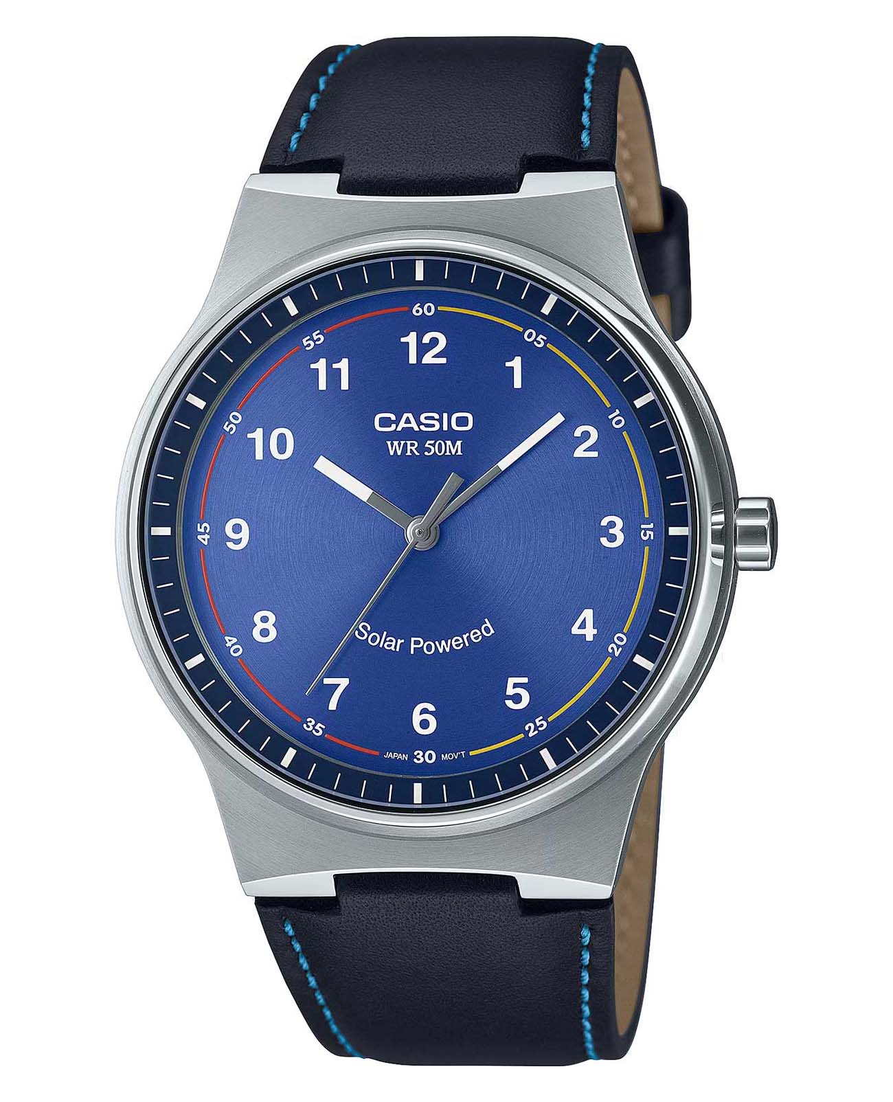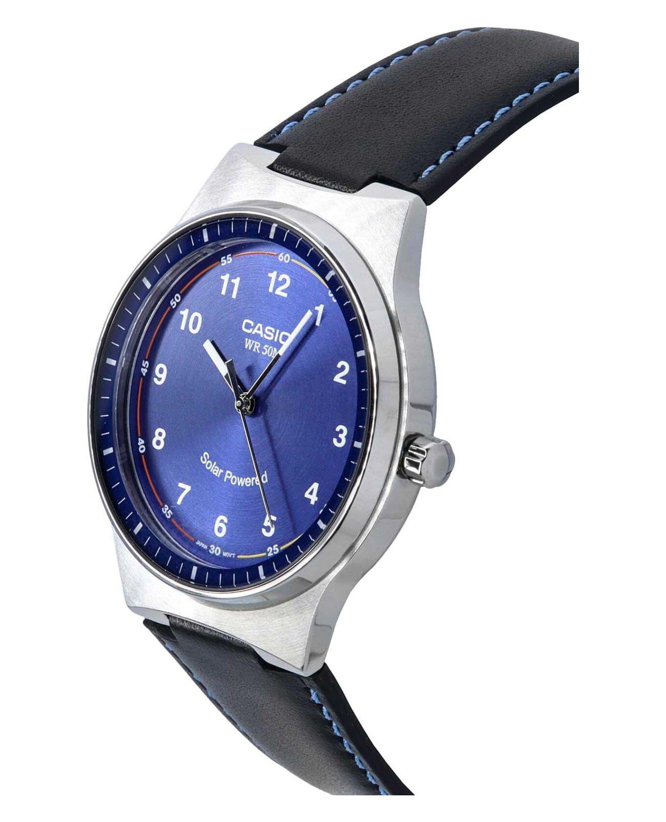 Японские мужские кварцевые часы с минеральным стекломМинеральное стеклоМинеральное стекло представляет собой искусственно выращенный минерал кварца. Такое стекло отличается особой устойчивостью к повреждениям и царапинам. Уступает по некоторым качествам сапфировому стеклу. Casio Collection MTP-RS105L-2B, кварцевый механизм с высокой точностью. Корпус часов изготовлен из нержавеющей стали. Питание от солнечной энергии. Время работы - 4 месяца. Циферблат с метками в виде штрихов выполнен по технологии Sunray (солнечные лучи). Циферблат с метками в виде штрихов. Класс водозащиты: 50 метров, позволит защитить корпус от случайных брызг или капель дождя. Кожаный ремешок на стандартной застежке.
