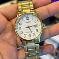 Японские мужские наручные часы с минеральным стекломМинеральное стеклоМинеральное стекло представляет собой искусственно выращенный минерал кварца. Такое стекло отличается особой устойчивостью к повреждениям и царапинам. Уступает по некоторым качествам сапфировому стеклу. Casio Collection MTP-V002G-7B2, кварцевый механизм с высокой точностью. Класс водозащиты: 30 метров, позволит защитить корпус от случайных брызг или капель дождя. Корпус часов изготовлен из стали с IP-покрытиемIP-покрытиеМетод ионного напыления. Демонстрирует повышенную устойчивость к истиранию, окислению и химическим веществам. Под воздействием высокого давления и температуры около 1500°C молекулы металла надёжно соединяются с частицами корпуса часов.. Стальной браслет на раскладной застёжкеРаскладная застёжкаТакой тип застёжки используется только на браслетах из металла. Она никогда не раскрывается полностью, происходит разделение на 2 и более частей. Раскладывающая застёжка снизит вероятность потери часов к минимуму. с IP-покрытиемIP-покрытиеМетод ионного напыления. Демонстрирует повышенную устойчивость к истиранию, окислению и химическим веществам. Под воздействием высокого давления и температуры около 1500°C молекулы металла надёжно соединяются с частицами корпуса часов.. Окошко даты находится в положении 3 часа.