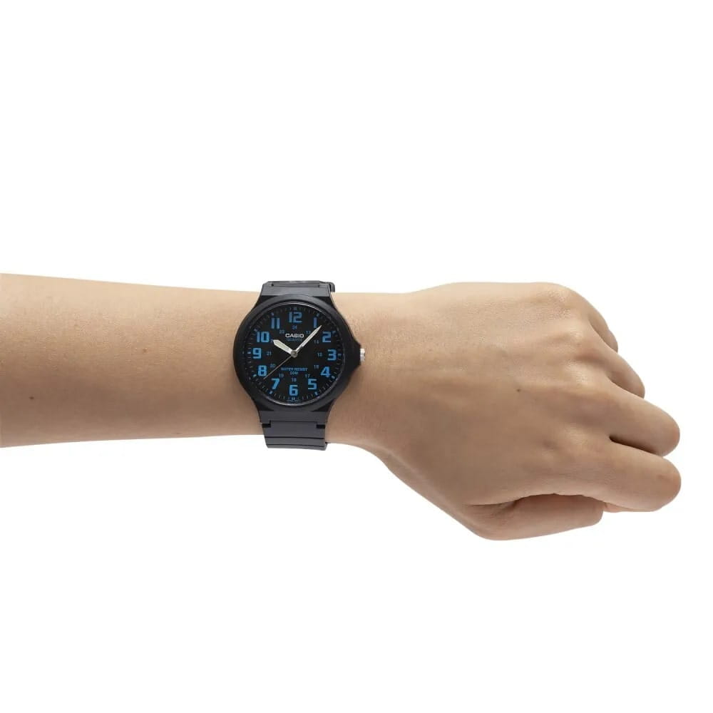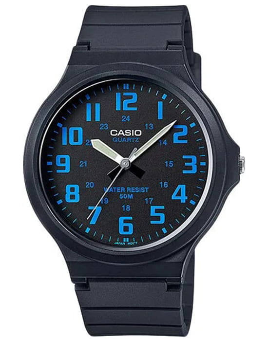 Японские мужские наручные часы Casio Collection MW-240-2BVDF (MW-240-2B), кварцевый механизм с высокой точностью. Класс водозащиты: 50 метров, позволит защитить корпус от случайных брызг или капель дождя. Корпус часов изготовлен из пластика, цвета.