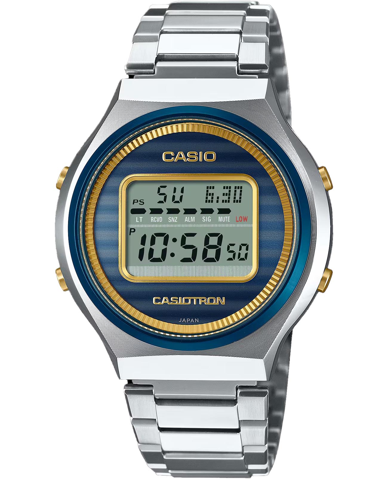 Японские наручные часы-хронографХронографФункция позволяет измерять отрезки времени с особой точностью: часы, минуты, секунды. Верным признаком хронографа является наличие на циферблате 3 дополнительных окошек-счётчиков. Casio CASIOTRON TRN-50SS-2A, кварцевый механизм с высокой точностью. Линейка CasioTron произвела революцию в часовой индустрии, появившись в 1974 году. Эти цифровые часы не только обеспечивали точное хронометражирование, но и обладали инновационными функциями, такими как будильники, секундомеры и калькуляторы. Использование кварцевой технологии обеспечило точное хронометражирование, а культовый светодиодныйСветодиодная подсветкаСветодиодная или LED-подсветка обеспечивает появление яркого холодного свечения за счёт LED-элементов - маленьких лампочек. Они потребляют минимальное количество энергии, чаще всего можно встретить 1 светодиод, в нижней части циферблата. дисплей сделал часы легко читаемыми при любом освещении. Все часы CASIOTRON ограниченной серии TRN-50-2 CASIOTRON имеют уникальный серийный номер, подчеркивающий их эксклюзивность, поскольку они являются одними из 4000 экземпляров, доступных по всему миру. Минеральное стеклоМинеральное стеклоМинеральное стекло представляет собой искусственно выращенный минерал кварца. Такое стекло отличается особой устойчивостью к повреждениям и царапинам. Уступает по некоторым качествам сапфировому стеклу. устойчивое к появлению царапин, обладающее высокой прозрачностью. Корпус часов изготовлен из стали. Tough SolarTough SolarТехнология основана на подзарядке аккумулятора от источника солнечного света, специальная панель улавливает солнечные лучи и преобразует их в энергию для работы часов. Достаточно пары минут нахождения на солнце для функционирования часов в течении суток.. Новый модуль 3542 предлагает расширенные функции, такие как мощное солнечное питание, 6-полосная радиоуправляемая регулировка времени и связь со смартфоном по BluetoothBluetoothСовременная технология, позволяющая синхронизировать часы с телефоном и переносить данные. Часы с Bluetooth расширяют возможности вашего смартфона и делают его использование ещё более удобным.. Коррекция текущего времени радиосигналом на территории почти всей Европы, США, Японии и Китая. СекундомерСекундомерСекундоме́р — прибор, способный измерять интервалы времени с точностью до долей секунды. с точностью показаний 1/10с и временем измерения 1ч. ТаймерТаймерОтсчитывает секунды в обратном направлении в заданном интервале времени. обратного отсчета от 1мин до 100мин. Мировое времяМировое время Полезное часовое усложнение, отображающее время в основных городах и известных областях по всему миру, оно связано с часовыми поясами, удобно для путешественников и бизнесменов. . 12-ти и 24-х часовой формат времени. Выбор языка отображения дня недели и месяца. Функция включения/отключения звука. Класс водозащиты: 50 метров, позволит защитить корпус от случайных брызг или капель дождя. Стальной браслет на раскладной застёжкеРаскладная застёжкаТакой тип застёжки используется только на браслетах из металла. Она никогда не раскрывается полностью, происходит разделение на 2 и более частей. Раскладывающая застёжка снизит вероятность потери часов к минимуму..