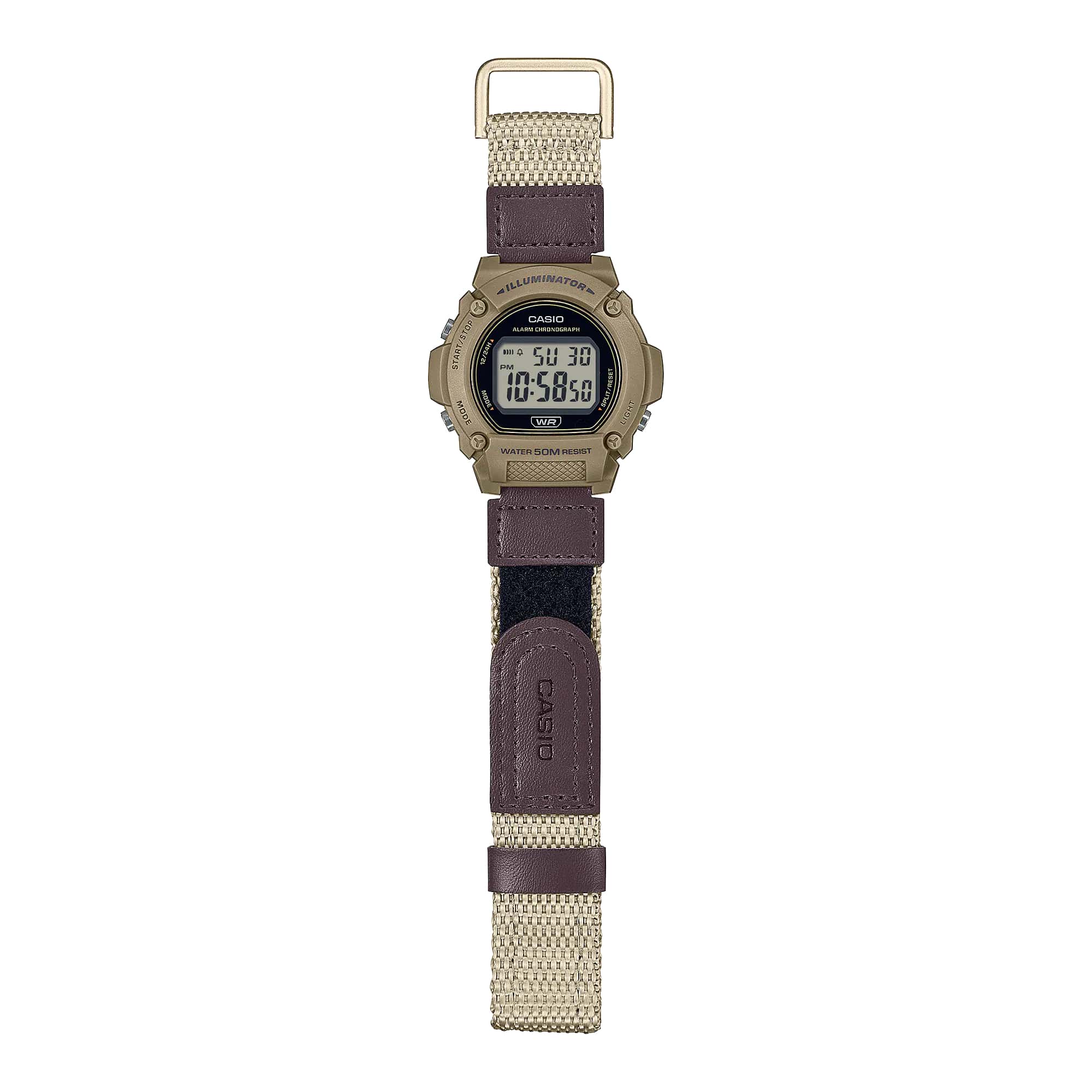 Casio W-219HB-5AVDF Кварцевый механизм с высокой точностью. Органическое стекло. Класс водозащиты: 50 метров, позволит защитить корпус от случайных брызг или капель дождя. Корпус из пластика. Тканевый браслет с классической застежкой. Светодиодная подсветкаСветодиодная подсветкаСветодиодная или LED-подсветка обеспечивает появление яркого холодного свечения за счёт LED-элементов - маленьких лампочек. Они потребляют минимальное количество энергии, чаще всего можно встретить 1 светодиод, в нижней части циферблата.. Функция секундомерСекундомерСекундоме́р — прибор, способный измерять интервалы времени с точностью до долей секунды. с точностью измерений 1/100 сек. и пределом измерения 1 час. Ежедневный будильникБудильникБуди́льник — часы, в заданный момент времени подающие звуковой, световой и/или в редких случаях другой сигнал.. Автоматический календарь. 12/24 часовой формат времени.