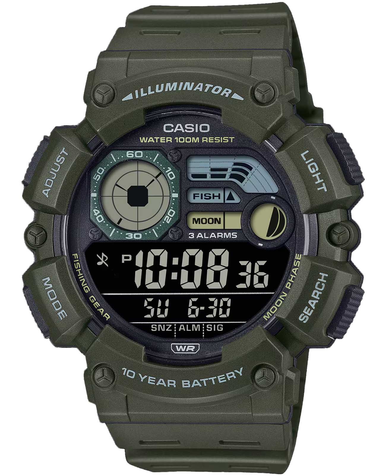 Японские мужские наручные часы Casio WS-1500H-3BV c кварцевым механизмом высокой точности. Функции: Мировое времяМировое время Полезное часовое усложнение, отображающее время в основных городах и известных областях по всему миру, оно связано с часовыми поясами, удобно для путешественников и бизнесменов. , светодиодная подсветкаСветодиодная подсветкаСветодиодная или LED-подсветка обеспечивает появление яркого холодного свечения за счёт LED-элементов - маленьких лампочек. Они потребляют минимальное количество энергии, чаще всего можно встретить 1 светодиод, в нижней части циферблата., секундомерСекундомерСекундоме́р — прибор, способный измерять интервалы времени с точностью до долей секунды., таймерТаймерОтсчитывает секунды в обратном направлении в заданном интервале времени., будильникБудильникБуди́льник — часы, в заданный момент времени подающие звуковой, световой и/или в редких случаях другой сигнал., автоматический календарь, 12/24 отображение времени. Продолжительное время работы аккумулятора - 10 лет. Органическое стекло, корпус и ремешок из полимерного пластика, водонепроницаемость 100 метров, позволит плавать, нырять и заниматься другими водными видами спорта