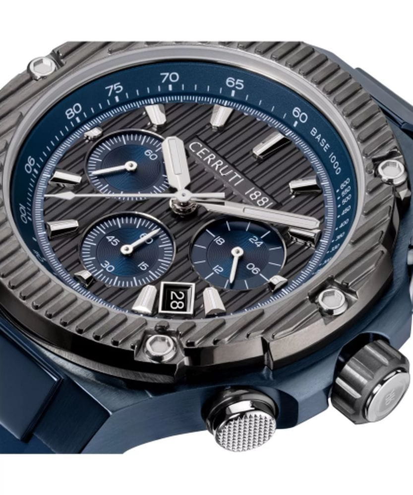 Cerruti 1881 CIWGO0050601 — выразительные мужские часы с современным архитектурным дизайном, сочетающие спортивную мощь и итальянскую утончённость. Корпус из нержавеющей стали с ip-покрытиемIP-покрытиеМетод ионного напыления. Демонстрирует повышенную устойчивость к истиранию, окислению и химическим веществам. Под воздействием высокого давления и температуры около 1500°C молекулы металла надёжно соединяются с частицами корпуса часов. фактурным шестигранным безелемБезельВнешний ободок, закрепляющий стекло. В спортивных часах так называется поворотное кольцо с делениями на циферблате, выполняет роль таймера – замеряет отрезки времени на шкале. Неподвижный безель – элемент декора. Однонаправленно вращающийся безель на дайверских часах позволяет фиксировать моменты погружения и выныривания на поверхность. с ip-покрытиемIP-покрытиеМетод ионного напыления. Демонстрирует повышенную устойчивость к истиранию, окислению и химическим веществам. Под воздействием высокого давления и температуры около 1500°C молекулы металла надёжно соединяются с частицами корпуса часов. подчёркивает индустриальный характер модели, а насыщенный циферблат с тремя счётчиками хронографаХронографФункция позволяет измерять отрезки времени с особой точностью: часы, минуты, секунды. Верным признаком хронографа является наличие на циферблате 3 дополнительных окошек-счётчиков. создаёт динамичную композицию. Контрастные стрелки и метки с люминесцентным покрытиемЛюминесцентное покрытиеПозволяет считывать показания времени в темноте. Производители наносят на стрелки, часовые индексы, безель или поверхность циферблата светонакопительный состав, дающий холодное свечение. обеспечивают превосходную читаемость, а прочное минеральное стеклоМинеральное стеклоМинеральное стекло представляет собой искусственно выращенный минерал кварца. Такое стекло отличается особой устойчивостью к повреждениям и царапинам. Уступает по некоторым качествам сапфировому стеклу. надёжно защищает циферблат. Мягкий силиконовый ремешок с интегрированным дизайном гармонирует с цветовой палитрой корпуса и обеспечивает комфортное прилегание к запястью. Cerruti 1881 — это стильный союз технологий, функциональности и узнаваемого итальянского характера, идеально подходящий для активного и уверенного мужчины.