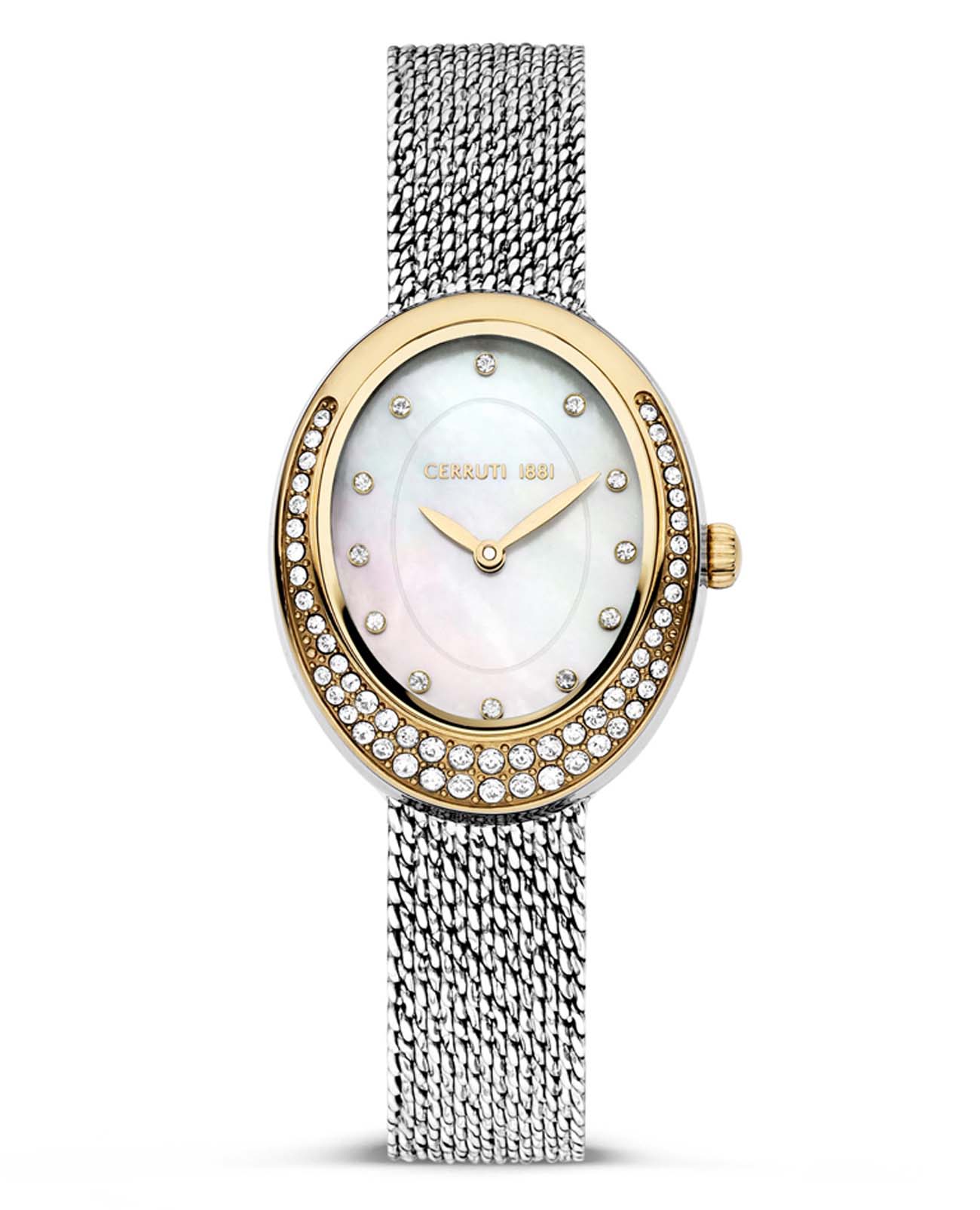 Французские женские часы с кристаллами Cerruti 1881 Nemi CIWLG0012503, кварцевый механизм с высокой точностью. Минеральное стеклоМинеральное стеклоМинеральное стекло представляет собой искусственно выращенный минерал кварца. Такое стекло отличается особой устойчивостью к повреждениям и царапинам. Уступает по некоторым качествам сапфировому стеклу. устойчивое к мелким механическим повреждениям. Корпус часов изготовлен из стали. БезельБезельВнешний ободок, закрепляющий стекло. В спортивных часах так называется поворотное кольцо с делениями на циферблате, выполняет роль таймера – замеряет отрезки времени на шкале. Неподвижный безель – элемент декора. Однонаправленно вращающийся безель на дайверских часах позволяет фиксировать моменты погружения и выныривания на поверхность. с IP-покрытиемIP-покрытиеМетод ионного напыления. Демонстрирует повышенную устойчивость к истиранию, окислению и химическим веществам. Под воздействием высокого давления и температуры около 1500°C молекулы металла надёжно соединяются с частицами корпуса часов. и циферблат украшены кристаллами. Класс водозащиты: 30 метров, позволит защитить корпус от случайных брызг или капель дождя. Стальной браслет миланского плетения на застёжке-бабочке с кнопкамиЗастёжка "бабочка"Такой вид застёжки дополняется предохранителями, помогающими избежать случайного раскрытия браслета. Обладают изящным исполнением. .