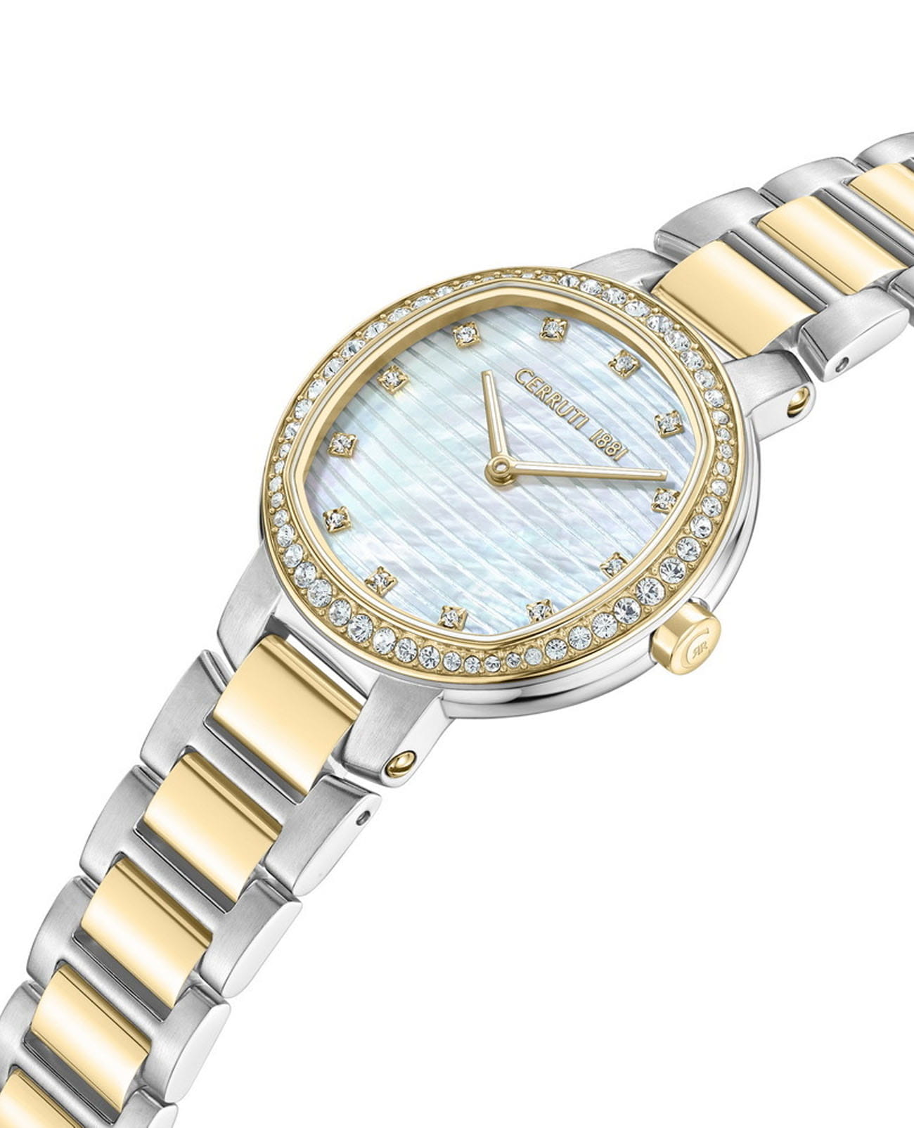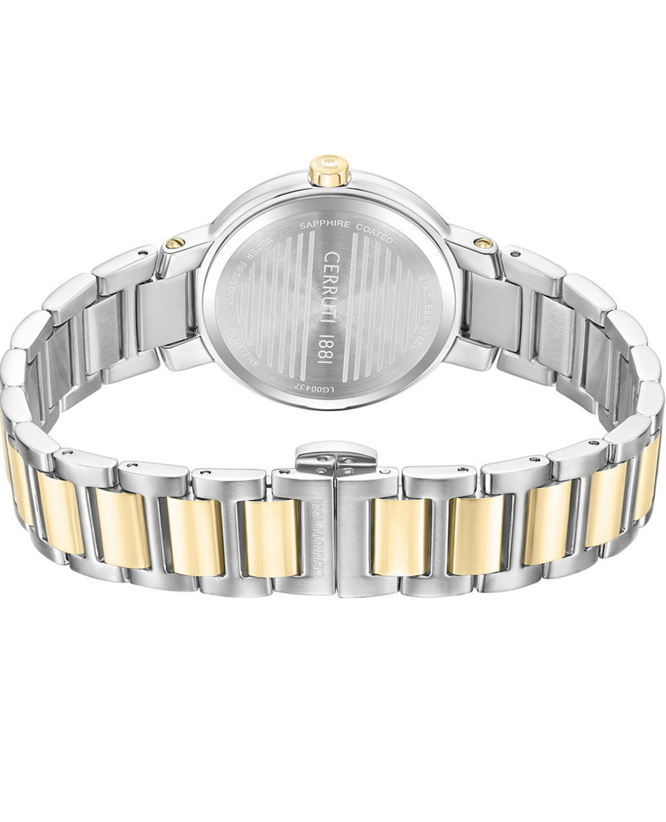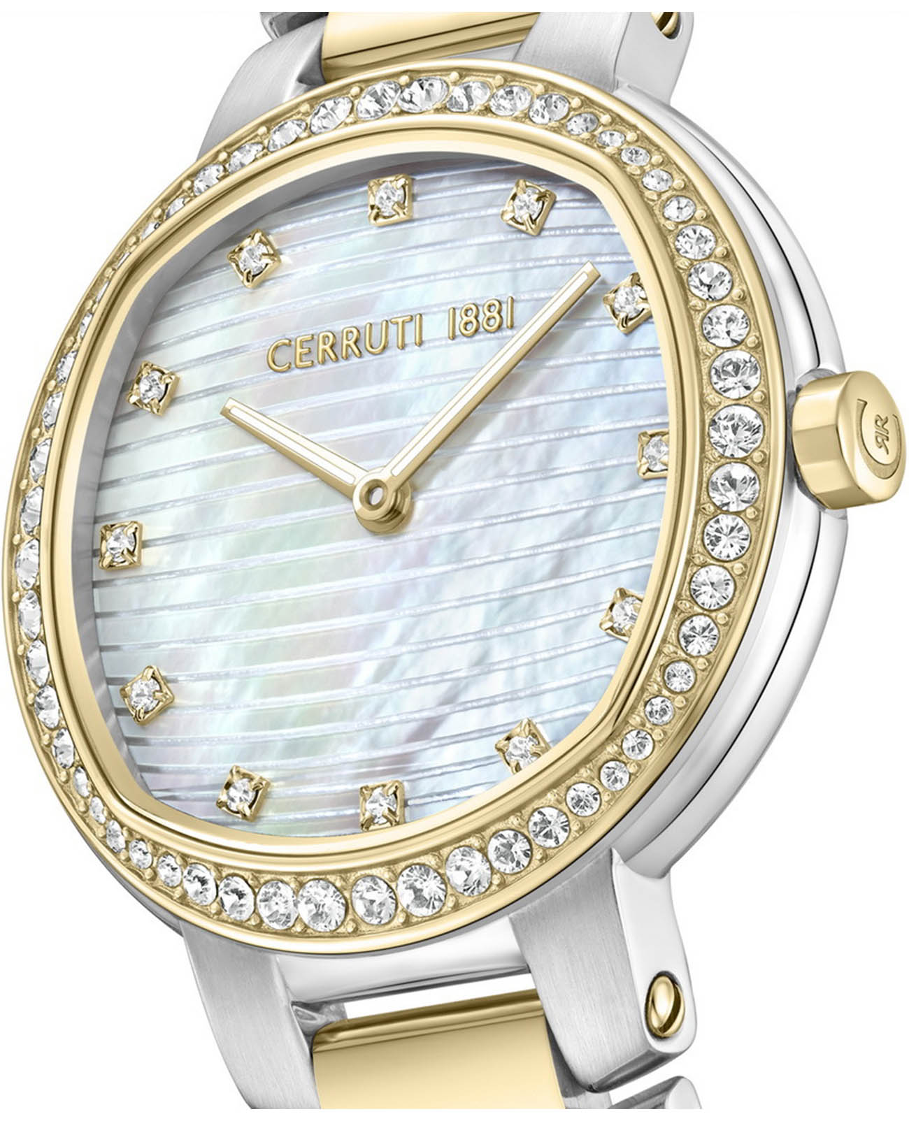 Французские женские часы CERRUTI 1881 BELLEGRA CIWLG0043701, кварцевый механизм с высокой точностью. Минеральное стеклоМинеральное стеклоМинеральное стекло представляет собой искусственно выращенный минерал кварца. Такое стекло отличается особой устойчивостью к повреждениям и царапинам. Уступает по некоторым качествам сапфировому стеклу. устойчивое к мелким механическим повреждениям. Корпус часов изготовлен из нержавеющей стали. Класс водозащиты: 50 метров, позволит защитить корпус от случайных брызг или капель дождя.Стрелки с люминесцентным покрытиемЛюминесцентное покрытиеПозволяет считывать показания времени в темноте. Производители наносят на стрелки, часовые индексы, безель или поверхность циферблата светонакопительный состав, дающий холодное свечение.. Стальной браслет на застёжка «бабочка» с кнопкамиЗастёжка "бабочка"Такой вид застёжки дополняется предохранителями, помогающими избежать случайного раскрытия браслета. Обладают изящным исполнением. с частичным IP-покрытиемIP-покрытиеМетод ионного напыления. Демонстрирует повышенную устойчивость к истиранию, окислению и химическим веществам. Под воздействием высокого давления и температуры около 1500°C молекулы металла надёжно соединяются с частицами корпуса часов..