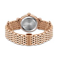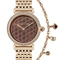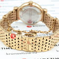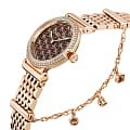 Циферблат, декорированный кристаллами и римскими метками, выглядит особенно эффектно, создавая атмосферу утонченной женственности. Класс водозащиты 50 метров позволяет носить часы в условиях умеренного контакта с водой, защищая их от случайных брызг или капель дождя.