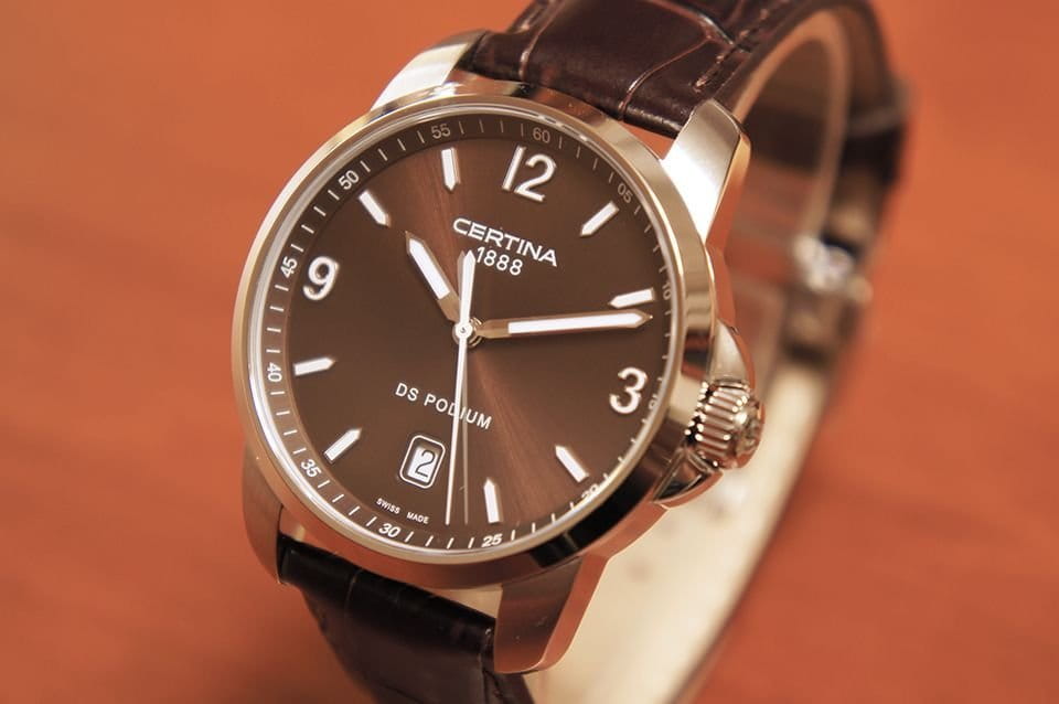 Стильный аксессуар в бронзовом цвете является воплощением классики и спортивной составляющей. Лаконичный циферблат дополнен контрастной разметкой и стрелками, это обеспечивает оптимальную читаемость данных. Корпус часов выполнен из нержавеющей стали 316L в соответствии с фирменной концепцией Double SecurityDS ConceptDouble Security Concept, обозначает двойную надёжность и безупречную точность часов Certina. Двойная система защиты подразумевает обеспечение максимальной устойчивости к ударам и высоких показателей водонепроницаемости.. Швейцарский кварцевый механизм ETA F06.111. Покрытие «антиблик» для стекла из сапфира. Люминесцентная подсветкаЛюминесцентное покрытиеПозволяет считывать показания времени в темноте. Производители наносят на стрелки, часовые индексы, безель или поверхность циферблата светонакопительный состав, дающий холодное свечение. стрелок и индексов. Ремешок из натуральной кожи. Сохранение водонепроницаемости до 10 бар. . Отображение числа. Диаметр корпуса: 38 мм.