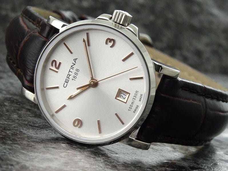 Женские швейцарские часы с сапфировым стекломСапфировое стеклоПрочный и надёжный материал из кристалла сапфира синтетического происхождения, характеризующийся особой твёрдостью и устойчивостью к царапинам и повреждениям. Certina DS Caimano C017.210.16.037.01 привлекает внимание окружающих приятным сочетанием простоты и кокетства. DS Caimano. Водонепроницаемые женские часы. Круглый стальной корпус. Циферблат выполнен по технологии Sunray (солнечные лучи). Узкие заостренные прямоугольные стрелки в стиле Baton. Метки в виде штрихов, 3, 6 и 12 часовые метки в виде арабских цифр.