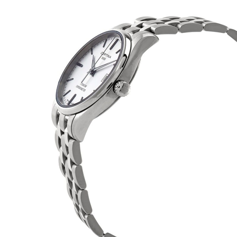 Женские швейцарские наручные часы с сапфировым стекломСапфировое стеклоПрочный и надёжный материал из кристалла сапфира синтетического происхождения, характеризующийся особой твёрдостью и устойчивостью к царапинам и повреждениям. Certina DS-8 Lady 30mm C033.251.44.031.00, кварцевый механизм с высокой точностью. Сапфировое стеклоСапфировое стеклоПрочный и надёжный материал из кристалла сапфира синтетического происхождения, характеризующийся особой твёрдостью и устойчивостью к царапинам и повреждениям. устойчивое к появлению царапин, обладающее высокой прозрачностью. Класс водозащиты: 100 метров, позволит плавать, нырять и заниматься другими водными видами спорта. Корпус и браслет часов изготовлены из титана. Браслет с застёжкой-бабочкой с кнопкамиЗастёжка "бабочка"Такой вид застёжки дополняется предохранителями, помогающими избежать случайного раскрытия браслета. Обладают изящным исполнением. . Окошко даты находятся в положении 3 часа.
