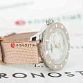 Безель изготовлен из белой куполообразной керамики с разметкой цвета розового золота, добавляя изысканности внешнему виду. Циферблат защищён сапфировым стекломСапфировое стеклоПрочный и надёжный материал из кристалла сапфира синтетического происхождения, характеризующийся особой твёрдостью и устойчивостью к царапинам и повреждениям. с антибликовым покрытиемАнтибликовое покрытиеСлой оксида металла в 0,13-0,3 микрон, благодаря которому стекло часов не бликует и не отражает свет. Антибликовое покрытие уменьшает отражение света в 10 раз, обеспечивая отличную читаемость показателей циферблата., обеспечивая высокую прозрачность и устойчивость к царапинам.