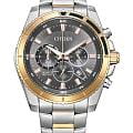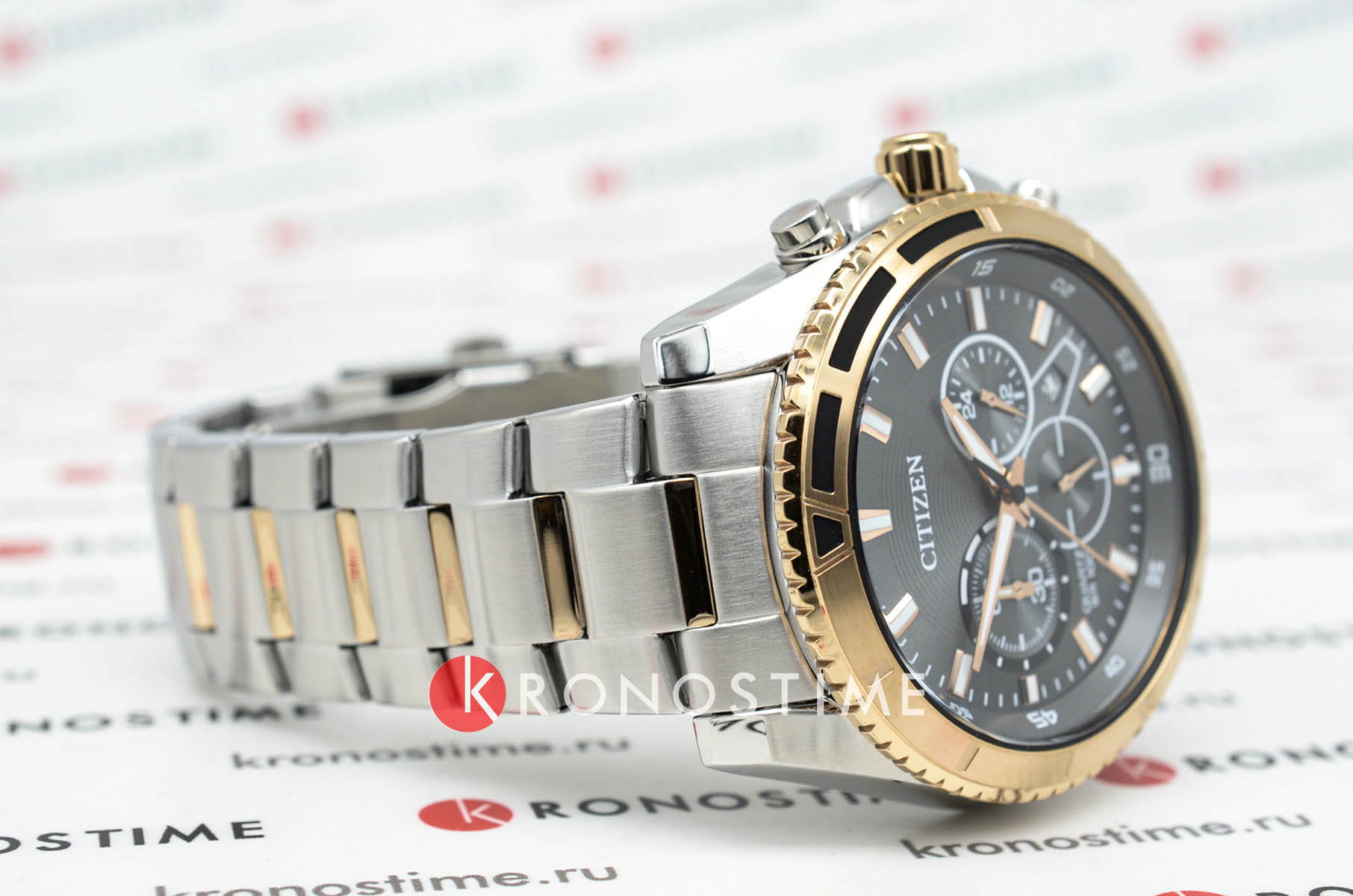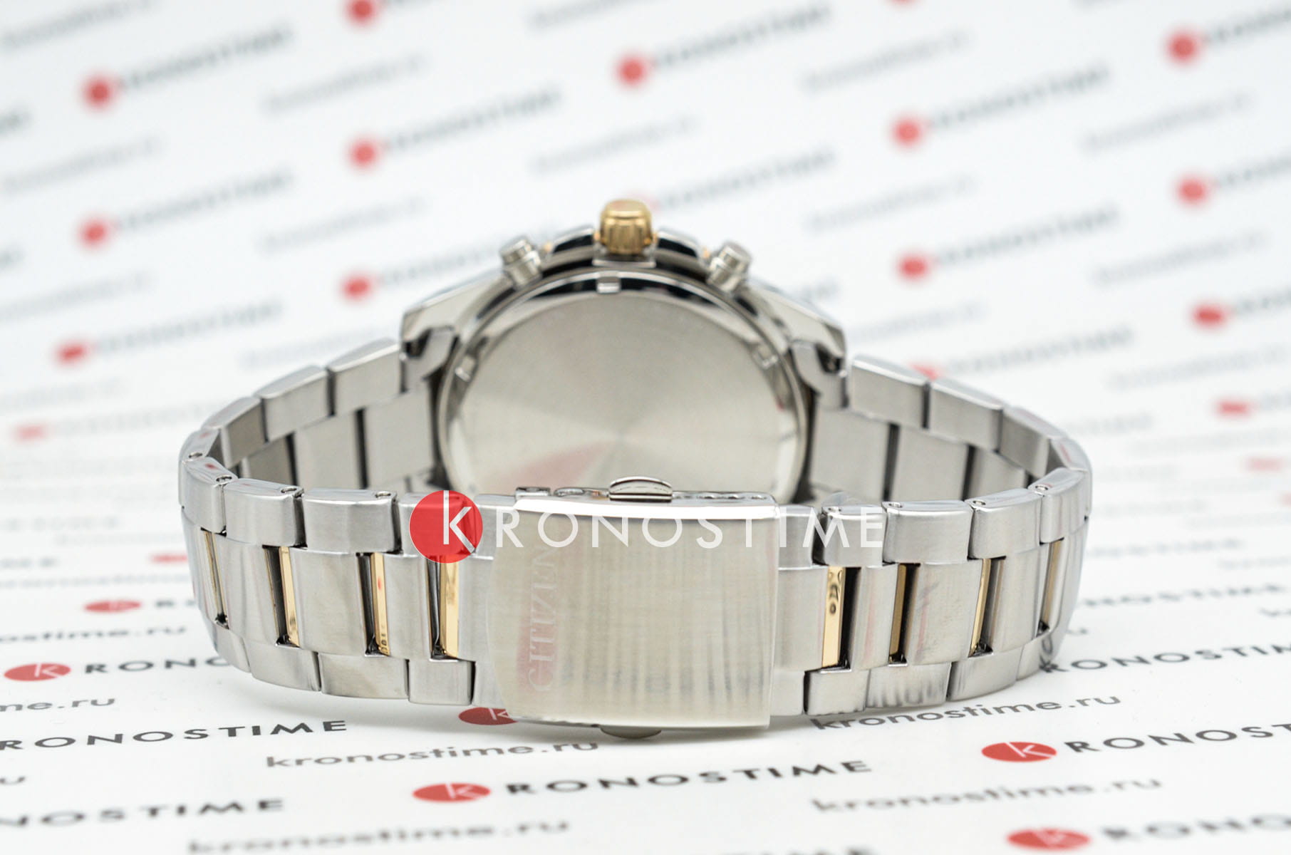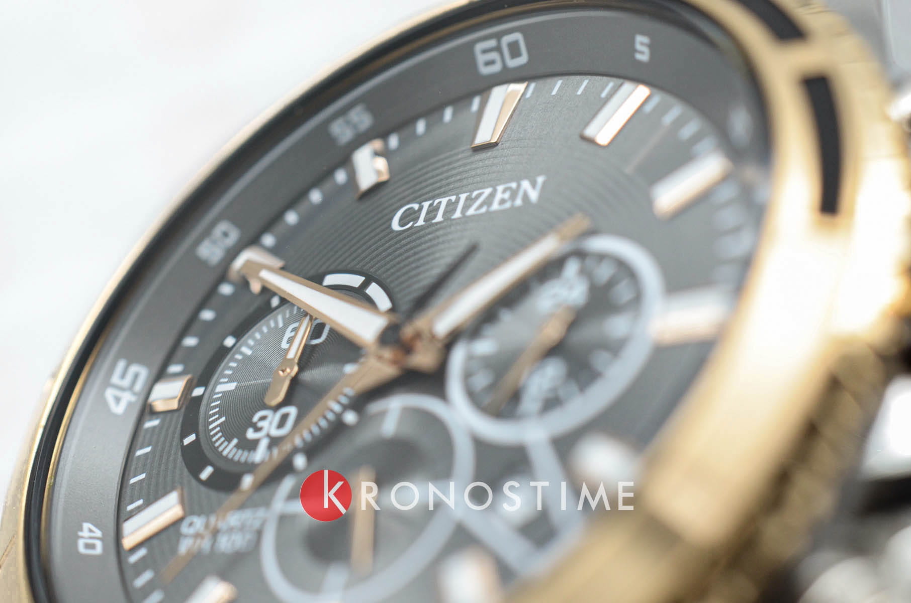 Citizen Chronograph AN8204-59H часы-хронографХронографФункция позволяет измерять отрезки времени с особой точностью: часы, минуты, секунды. Верным признаком хронографа является наличие на циферблате 3 дополнительных окошек-счётчиков. с секундомеромСекундомерСекундоме́р — прибор, способный измерять интервалы времени с точностью до долей секунды.. Корпус из нержавеющей стали диаметром 46,4 мм идеально сбалансирован. Минеральное стеклоМинеральное стеклоМинеральное стекло представляет собой искусственно выращенный минерал кварца. Такое стекло отличается особой устойчивостью к повреждениям и царапинам. Уступает по некоторым качествам сапфировому стеклу. обеспечивает отличную защиту циферблата от царапин. Часы работают на основе кварцевого механизма. Стальной браслет на раскладной застёжкеРаскладная застёжкаТакой тип застёжки используется только на браслетах из металла. Она никогда не раскрывается полностью, происходит разделение на 2 и более частей. Раскладывающая застёжка снизит вероятность потери часов к минимуму. идеально дополняют дизайн часов, обеспечивая комфортное ношение. БезельБезельВнешний ободок, закрепляющий стекло. В спортивных часах так называется поворотное кольцо с делениями на циферблате, выполняет роль таймера – замеряет отрезки времени на шкале. Неподвижный безель – элемент декора. Однонаправленно вращающийся безель на дайверских часах позволяет фиксировать моменты погружения и выныривания на поверхность. с IP-покрытиемIP-покрытиеМетод ионного напыления. Демонстрирует повышенную устойчивость к истиранию, окислению и химическим веществам. Под воздействием высокого давления и температуры около 1500°C молекулы металла надёжно соединяются с частицами корпуса часов.. Секундомер с точностью показаний 1c и временем измерения 60мин. Окошко даты находится между часовыми отметками 4 и 5. 12-ти и 24-х часовой формат времени отображается на отдельном циферблате. Заводная головка с защитой. Часы обладают впечатляющей водонепроницаемостью до 100WR, что делает их идеальными для повседневной носки.