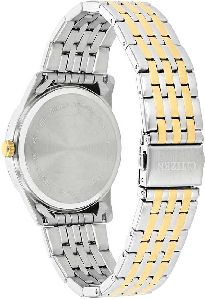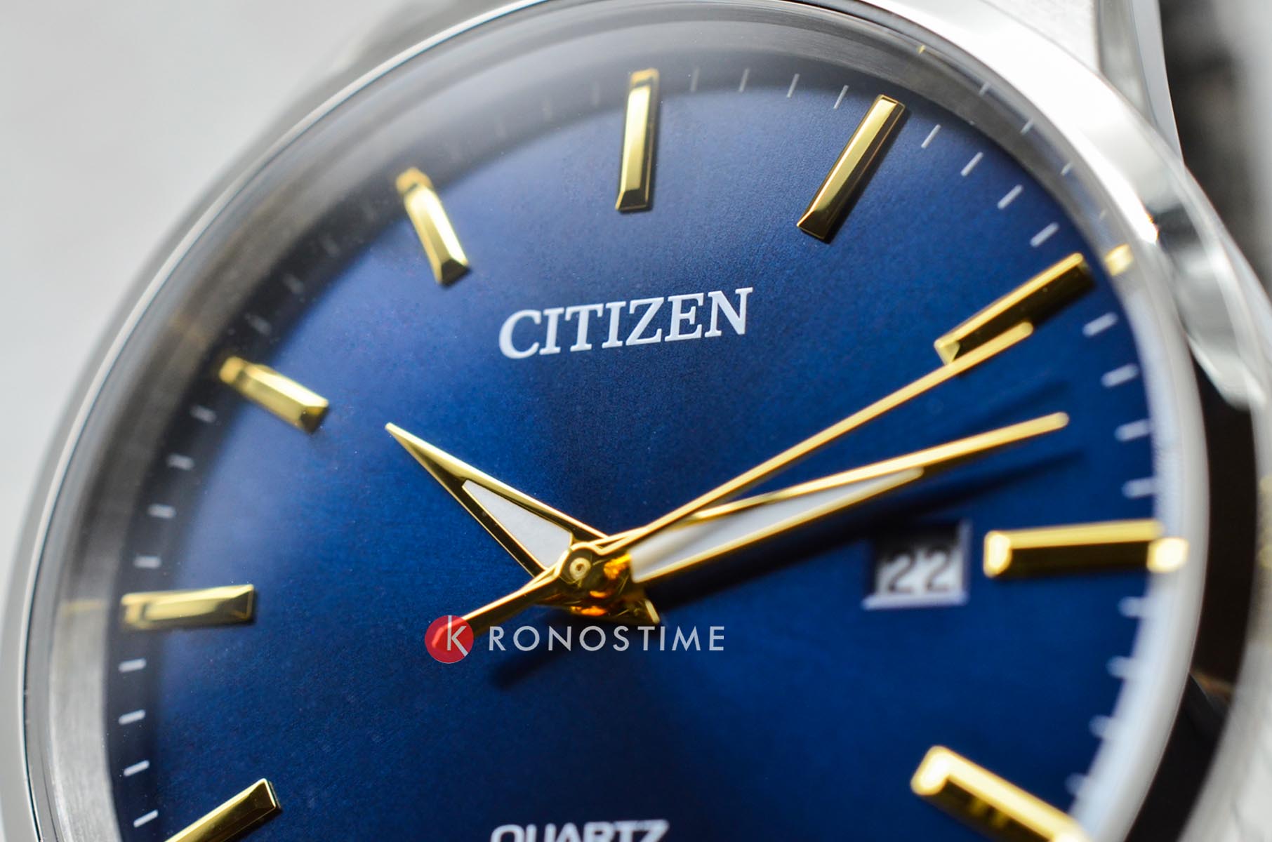 Часы Citizen BI5006-81L сочетают в себе японское качество, современный дизайн и надежность кварцевого механизма Citizen G111. Круглый корпус диаметром 39 мм выполнен из прочной нержавеющей стали, что обеспечивает долговечность и стильный внешний вид. Синий циферблат украшен метками в виде штрихов, а также дополнен окошком календаря с отображением даты и дня недели в позиции «3 часа». Стрелки с люминесцентным покрытиемЛюминесцентное покрытиеПозволяет считывать показания времени в темноте. Производители наносят на стрелки, часовые индексы, безель или поверхность циферблата светонакопительный состав, дающий холодное свечение., что обеспечивает отличную видимость в темноте. Минеральное стеклоМинеральное стеклоМинеральное стекло представляет собой искусственно выращенный минерал кварца. Такое стекло отличается особой устойчивостью к повреждениям и царапинам. Уступает по некоторым качествам сапфировому стеклу. защищает циферблат от царапин и повреждений. Рифленая заводная головка подчеркивает элегантность и практичность модели. Стальной браслет с частичным золотистым IP-покрытиемIP-покрытиеМетод ионного напыления. Демонстрирует повышенную устойчивость к истиранию, окислению и химическим веществам. Под воздействием высокого давления и температуры около 1500°C молекулы металла надёжно соединяются с частицами корпуса часов. оснащен надежной раскладной застёжкойРаскладная застёжкаТакой тип застёжки используется только на браслетах из металла. Она никогда не раскрывается полностью, происходит разделение на 2 и более частей. Раскладывающая застёжка снизит вероятность потери часов к минимуму., что обеспечивает комфортное ношение и подходит для любого случая. Водозащита до 50 метров позволяет не бояться случайных брызг и дождя.