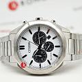 Citizen CA4590-81A — это современный и функциональный хронограф, идеально подходящий для повседневного использования. Корпус и браслет часов выполнены из прочной нержавеющей стали, что обеспечивает надежность и элегантный внешний вид, а белый циферблат с лаконичными метками в виде штрихов придаёт модели утончённость и универсальность. Часы оснащены кварцевым механизмом Citizen B620 с инновационной системой Eco-Drive, которая работает на солнечной энергии и не требует замены батарейки, обеспечивая запас хода до 270 дней. Продуманная индикаторная система EOLEOLПредставляет собой систему, уведомляющую владельца часов о необходимости замены элемента питания. За 2 недели до полного разряда батарейки секундная стрелка перестаёт ходить чётко и начинает перепрыгивать на 3-4 деления. своевременно оповещает о необходимости подзарядки, а функция предотвращения перезарядки гарантирует долгий срок службы. Модель оснащена хронографомХронографФункция позволяет измерять отрезки времени с особой точностью: часы, минуты, секунды. Верным признаком хронографа является наличие на циферблате 3 дополнительных окошек-счётчиков. с секундомеромСекундомерСекундоме́р — прибор, способный измерять интервалы времени с точностью до долей секунды., измеряющим время с точностью 1/5 секунды и максимальной продолжительностью замера до 1 часа, а также поддерживает 12- и 24-часовой формат отображения времени. Секундная стрелка вынесена на отдельный малый циферблат, а окошко даты удобно расположено между отметками 4 и 5 часов. Стрелки с люминесцентным покрытиемЛюминесцентное покрытиеПозволяет считывать показания времени в темноте. Производители наносят на стрелки, часовые индексы, безель или поверхность циферблата светонакопительный состав, дающий холодное свечение. обеспечивают отличную читаемость времени даже в темное время суток. Прочное минеральное стеклоМинеральное стеклоМинеральное стекло представляет собой искусственно выращенный минерал кварца. Такое стекло отличается особой устойчивостью к повреждениям и царапинам. Уступает по некоторым качествам сапфировому стеклу. защищает циферблат от царапин, водозащита 100WR допускает плавание и другие водные процедуры. Завинчивающаяся задняя крышка и заводная головка с защитой повышают надежность конструкции, а браслет с раскладной застёжкойРаскладная застёжкаТакой тип застёжки используется только на браслетах из металла. Она никогда не раскрывается полностью, происходит разделение на 2 и более частей. Раскладывающая застёжка снизит вероятность потери часов к минимуму. гарантирует комфортное и безопасное ношение. Диаметр корпуса составляет 41 мм, толщина 12,1 мм, ширина браслета — 22 мм, вес — 140 г. Эта модель станет отличным выбором для тех, кто ценит точность, функциональность и современный стиль.
