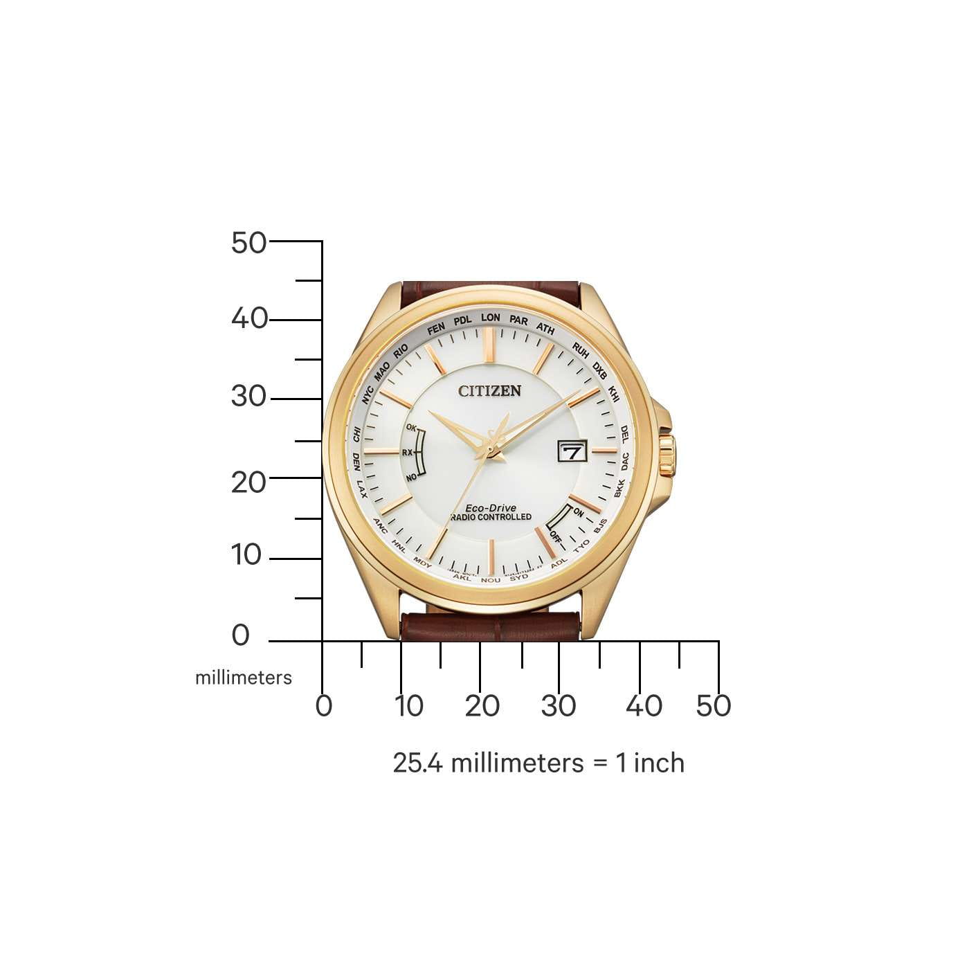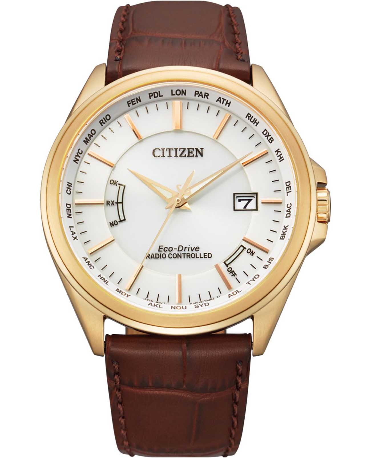 Citizen CB0253-19A — это высокоточные японские часы с современным кварцевым механизмом Citizen H145 и инновационной системой Eco-Drive, работающей от солнечной энергии и не требующей замены батарейки. Запас хода составляет до 180 дней без подзарядки, предусмотрены функции индикации уровня заряда, предотвращения перезарядки и энергосбережения. Корпус выполнен из прочной нержавеющей стали с IP-покрытиемIP-покрытиеМетод ионного напыления. Демонстрирует повышенную устойчивость к истиранию, окислению и химическим веществам. Под воздействием высокого давления и температуры около 1500°C молекулы металла надёжно соединяются с частицами корпуса часов., диаметр корпуса — 43 мм, толщина — 10 мм, ширина ремешка — 22 мм. Защита от воды до 100WR позволяет использовать часы во время плавания. Сапфировое стеклоСапфировое стеклоПрочный и надёжный материал из кристалла сапфира синтетического происхождения, характеризующийся особой твёрдостью и устойчивостью к царапинам и повреждениям. защищает белый циферблат с вечным календарём и отображением числа, окошко даты расположено на отметке 3 часа. Часы автоматически принимают радиосигналы времени с вышек в Европе, США, Японии и Китае, обеспечивая максимально точное время и автоматический переход на летнее и зимнее время с возможностью отключения этой функции. Стрелки с люминесцентным покрытиемЛюминесцентное покрытиеПозволяет считывать показания времени в темноте. Производители наносят на стрелки, часовые индексы, безель или поверхность циферблата светонакопительный состав, дающий холодное свечение. обеспечивают отличную читаемость времени даже в темное время суток. Также поддерживается мировое времяМировое время Полезное часовое усложнение, отображающее время в основных городах и известных областях по всему миру, оно связано с часовыми поясами, удобно для путешественников и бизнесменов. для 26 городов. Коричневый кожаный оборудован удобной классической застежкой.